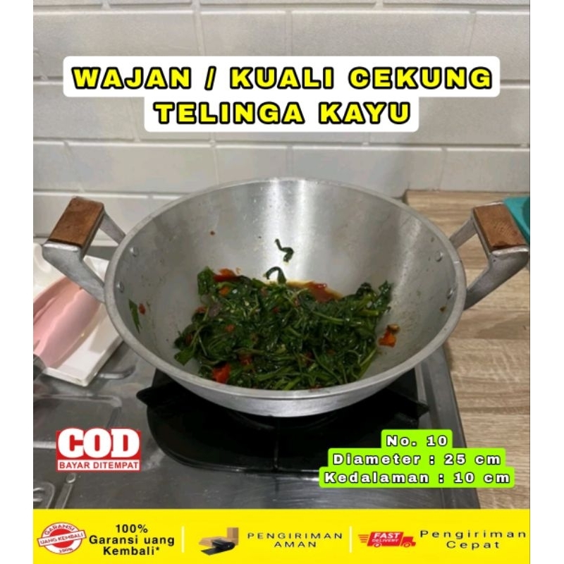 WAJAN PANCI CEKUNG KUALI KUWUNG TELINGA KAYU ALUMUNIUM TEBAL PENGGORENGAN WAJAN