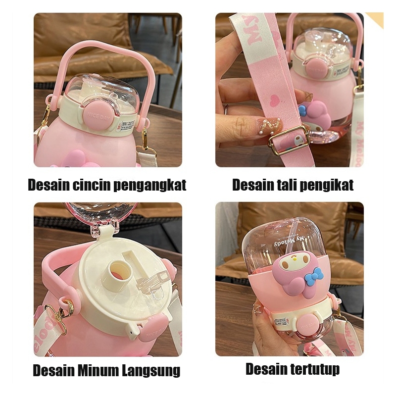 1050ml Kuromi Cinnamoroll Botol Minum 2in1 Tumbler Botol Minum Anak