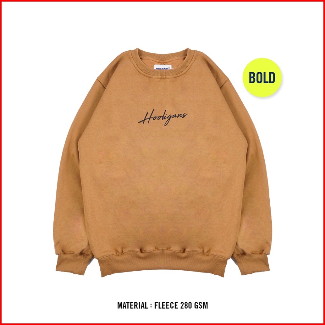 Hooligans Sweater Crewneck Bold Sign Dijon