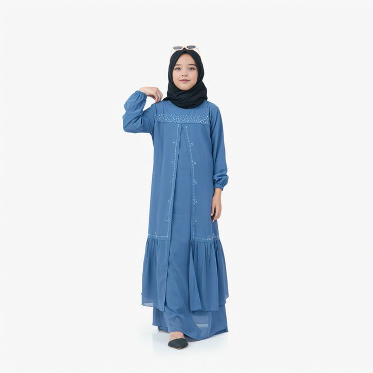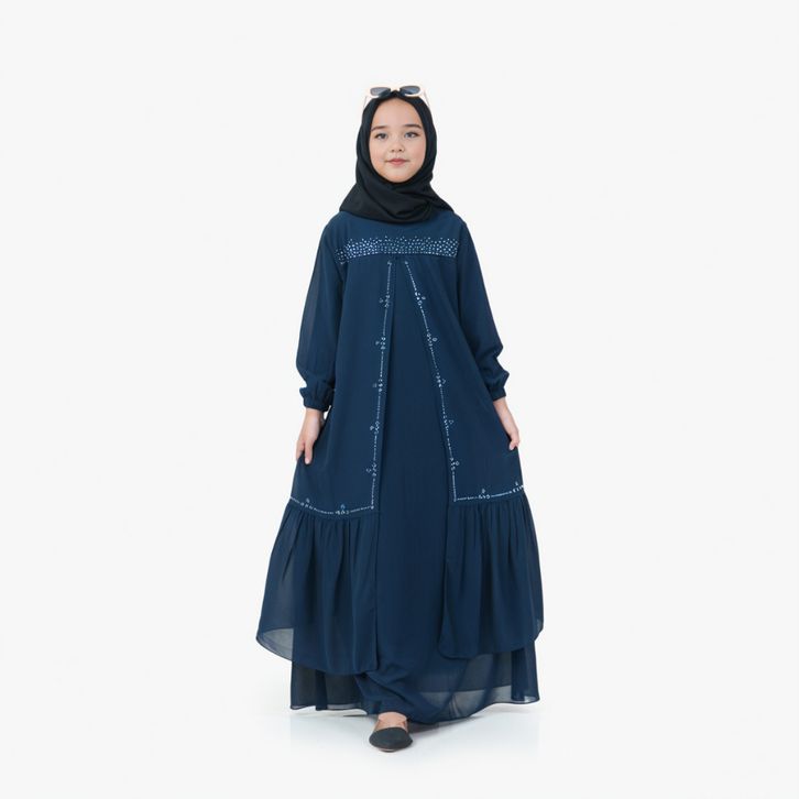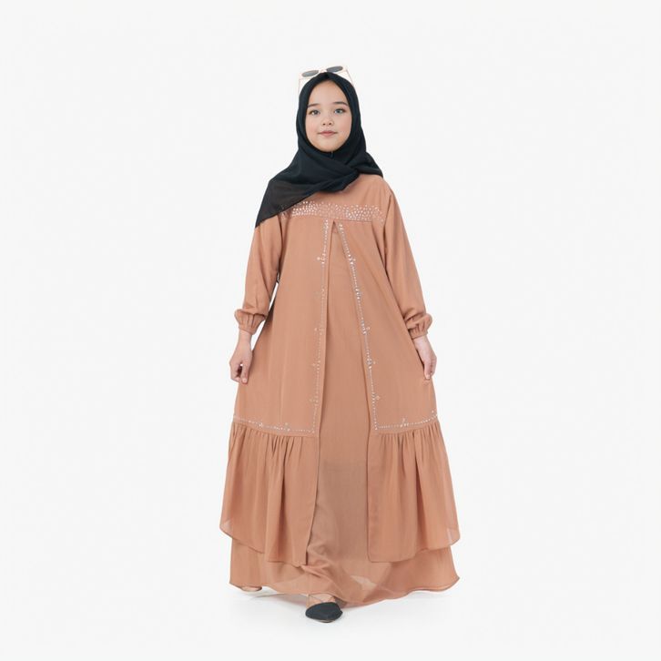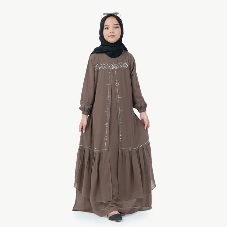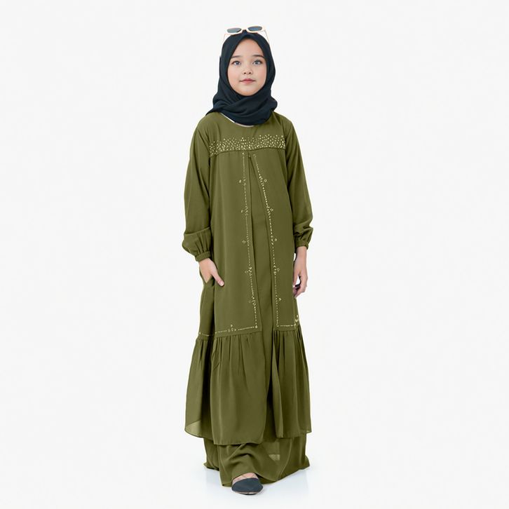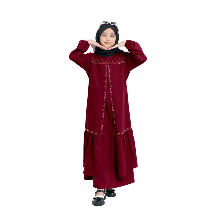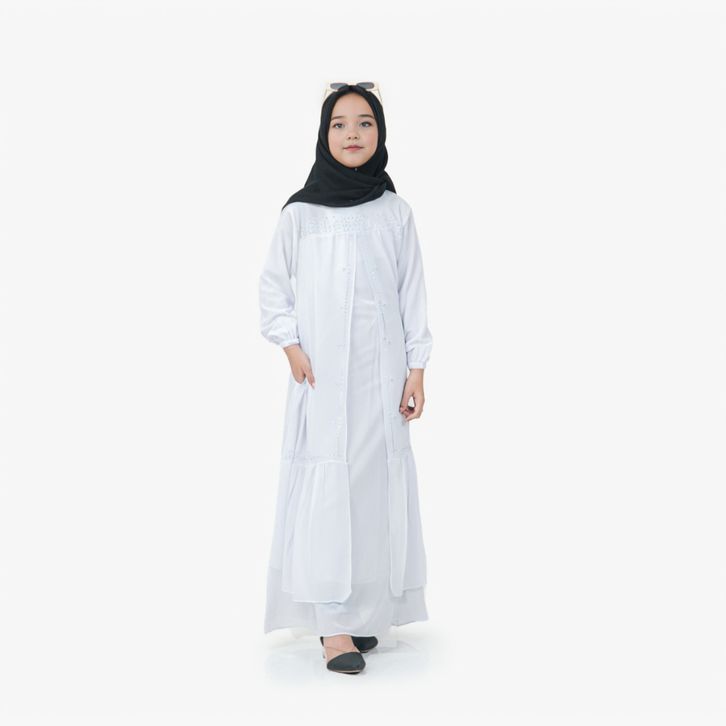 Gamis Anak Perempuan Usia 5Th-13Th Bahan Ceruty Babydoll Mix Swaroski Baju Lebaran