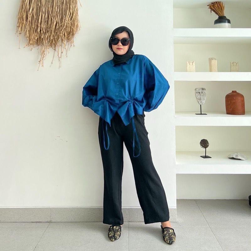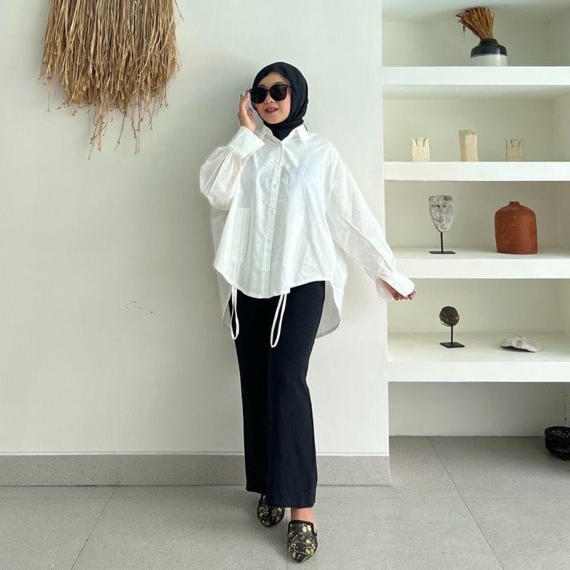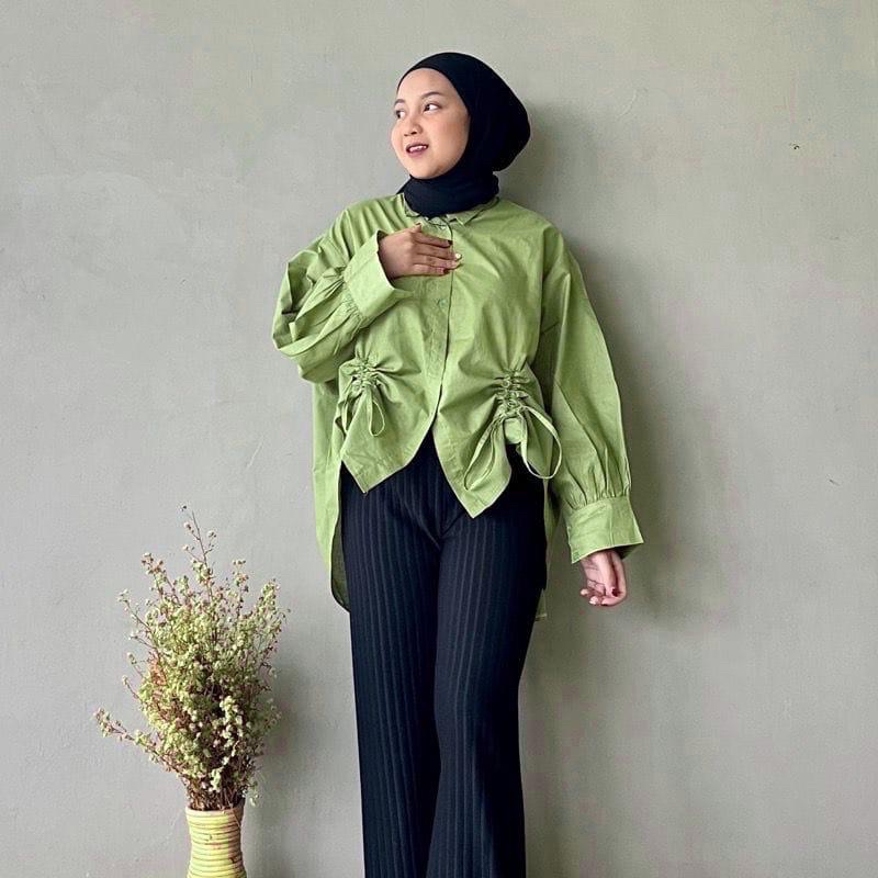 (Gratis Ongkir) Kemeja Katun Oversize Serut Depan - Katun Shirt Oversize