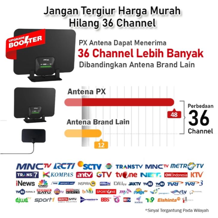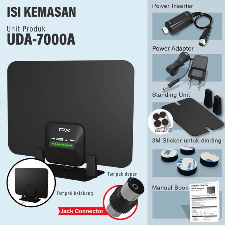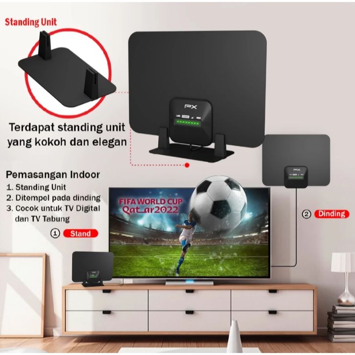 Antena TV Digital Indoor PX UDA-7000A di Dinding Dalam Ruangan DVB-T2 dengan Booster LED