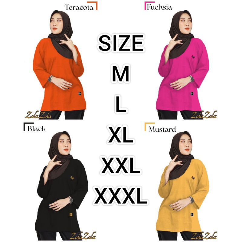 Kaos WANITA OVERSIZE Polos Zola Zola Original Lengan 7/8 Wanita model Oval Basic Cotton Combed 24s Size L XL XXL XXXL
