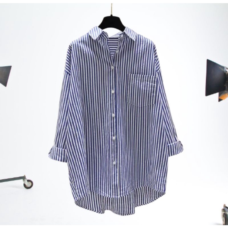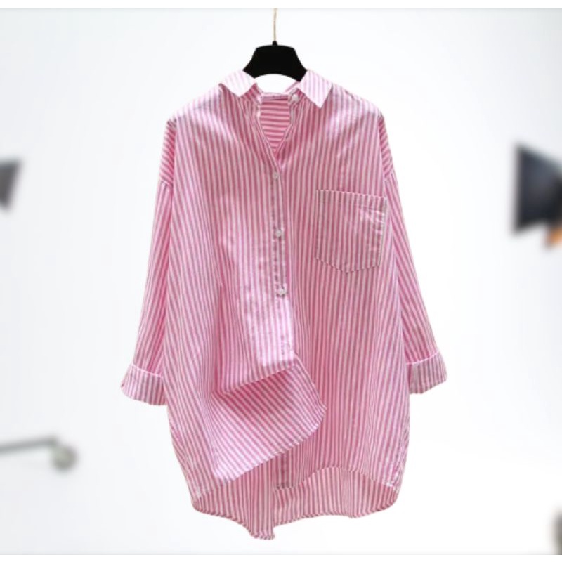 kemeja salur wanita//kemeja saku//baju atasan remaja dewasa//outfit kekinian//kemeja terlaris