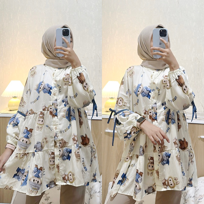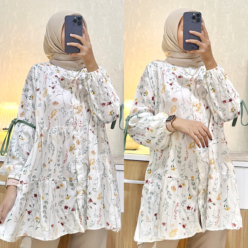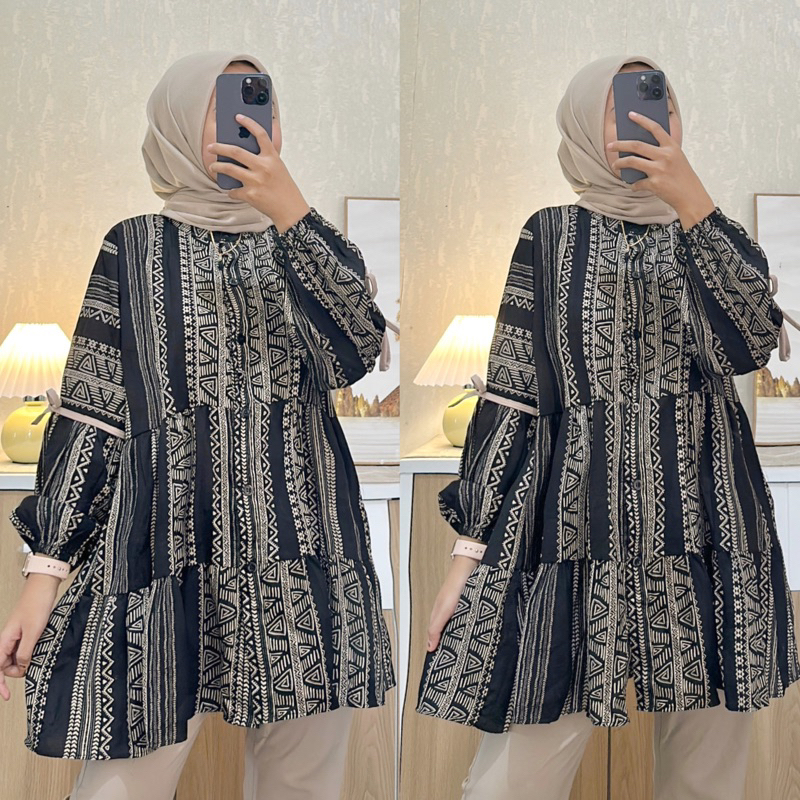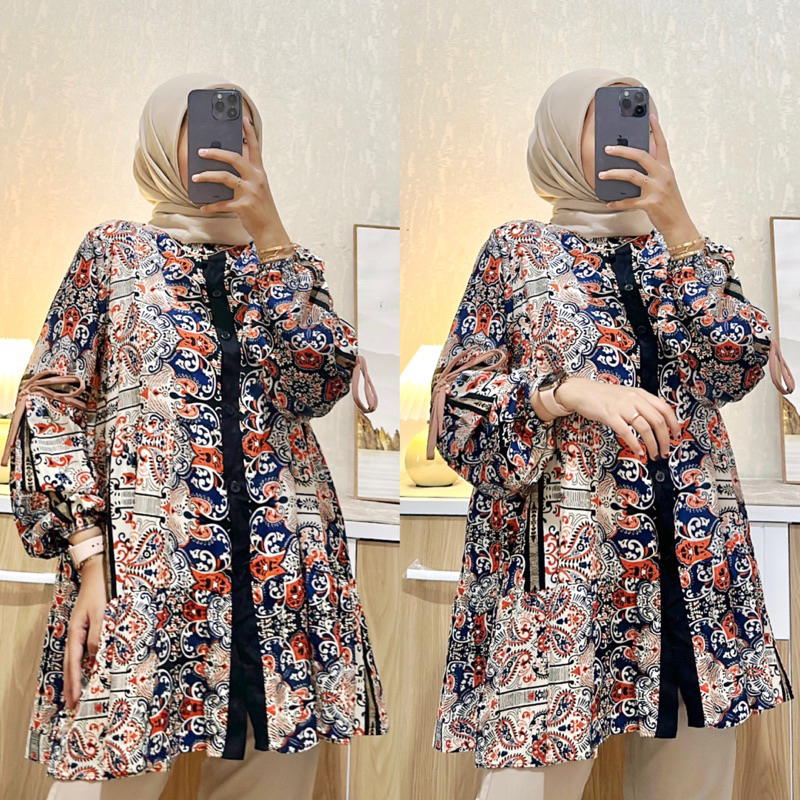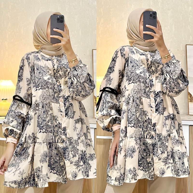 MAUDY BLOUSE | Atasan Rayon Motif Tali pita tangan | Atasan rayon kancing aktif | Atasan Best seller