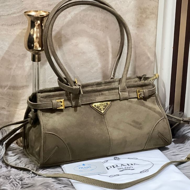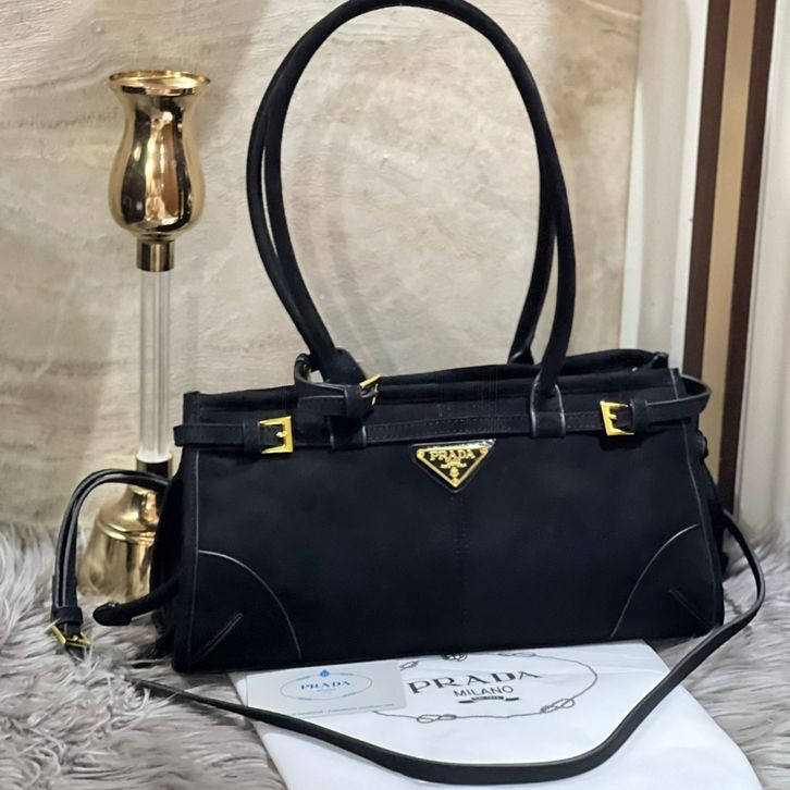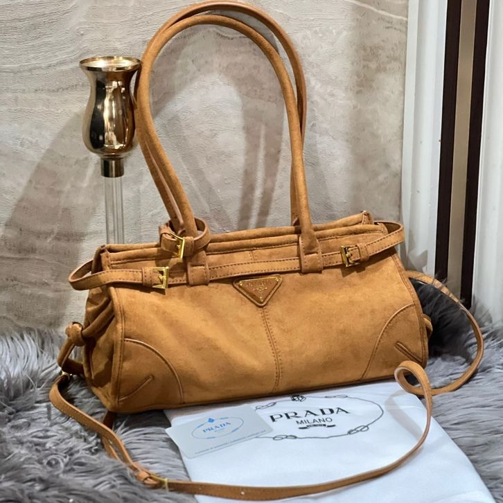 TAS WANITA PRADA LONGHANDLE IN SUEDE PREMIUM/TAS PRADA BONNIE 32CM/SHOULDERBAG/TAS BRANDED TERBARU