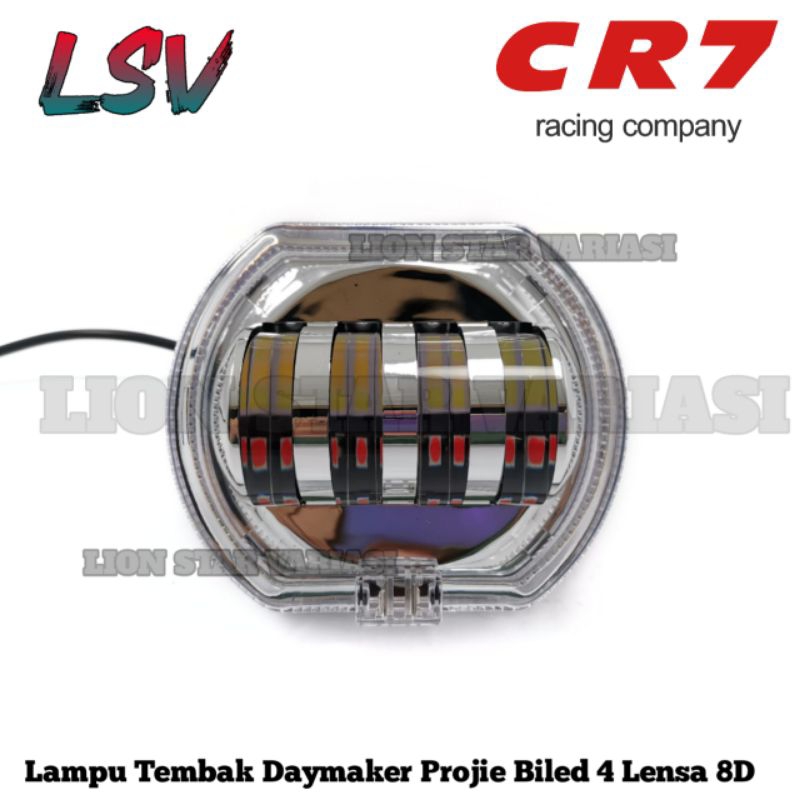 LAMPU BILED PROJIE 4 LENSA 8D CR7 4.5 INCH LAMPU DEPAN BILED PROJIE PLUS SHROUD HIGH LOW RING ANGEL EYE UNIVERSAL MOTOR MOBIL