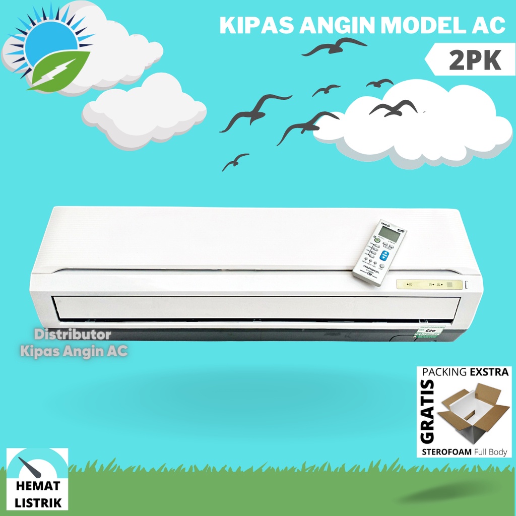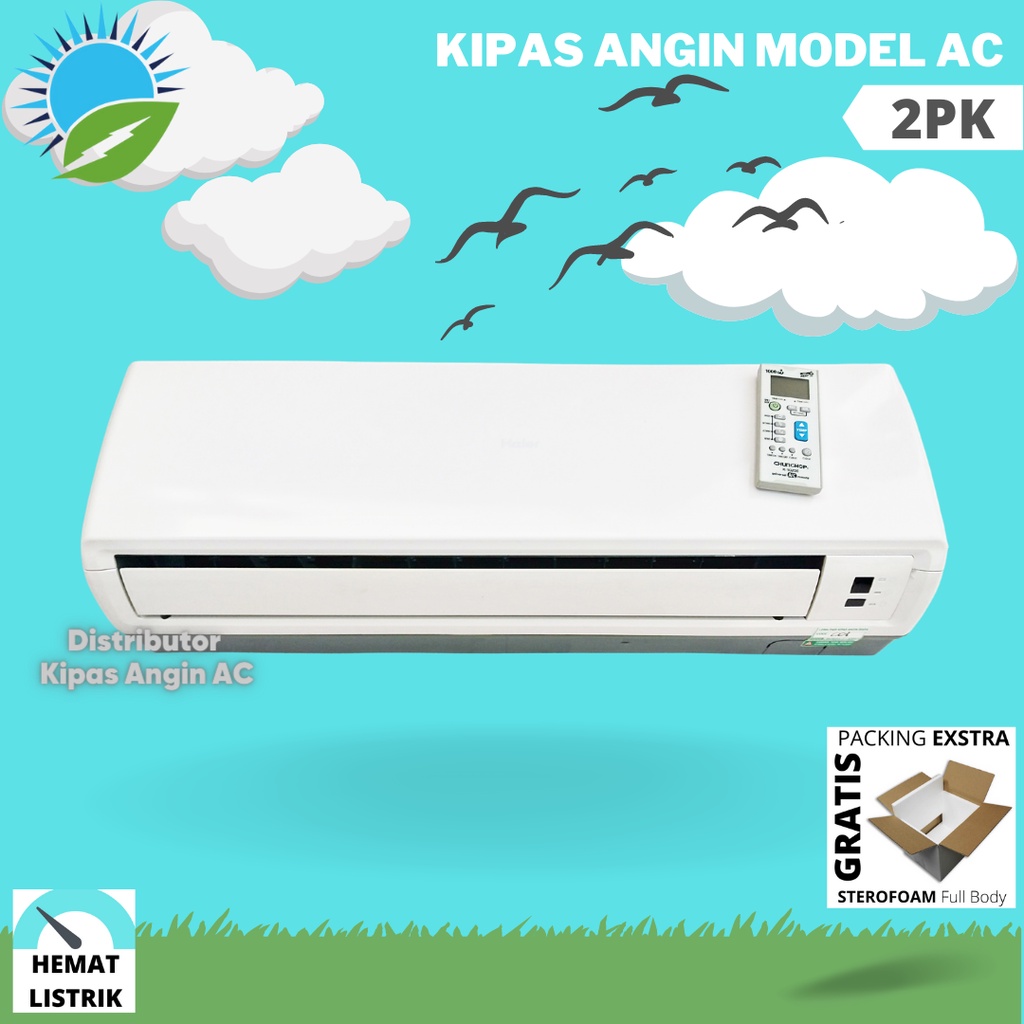Kipas AC 2PK Remote | Kipas Angin Dinding Remot Bentuk AC untuk Kamar 3m x 3m Daya Rendah 30 Watt