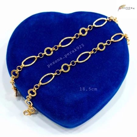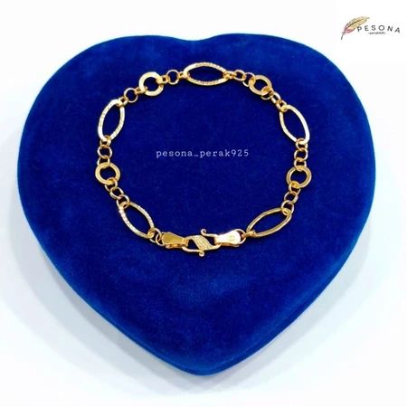 GELANGG TANGAN PERAK ASLI SILVER 925 LAPIS EMS PUTIH MODEL RANTAI OVAL UKIR PERAK ASLI SILVER 925 ADA SURAT