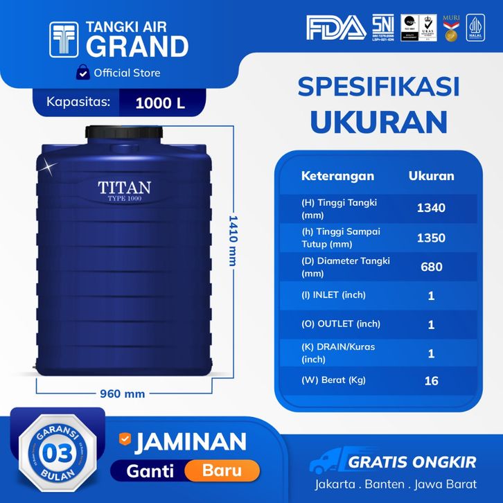 [Star]TANGKI TOREN TANDON AIR TITAN BLOW 500 LITER 550 LITER 1000 LITER 1100 LITER ANTI LUMUT SNI GRATIS ONGKIR
