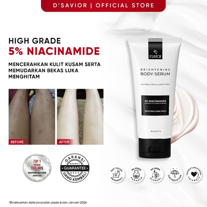 D'SAVIOR Brightening Body Serum Niacinamide 5% High Grade 150ml | Serum Pelembab Pencerah Kulit