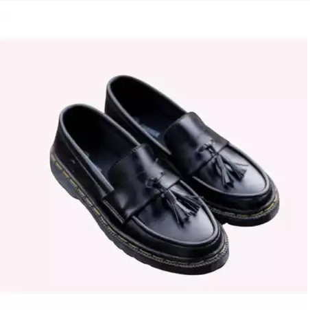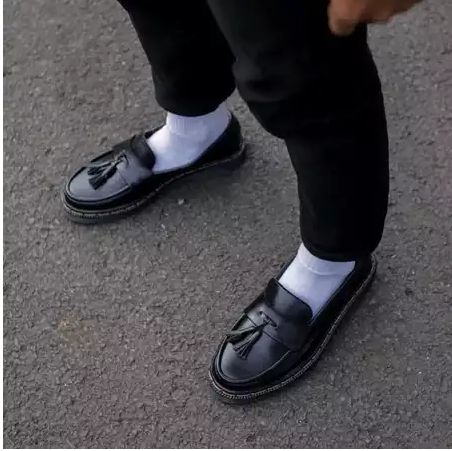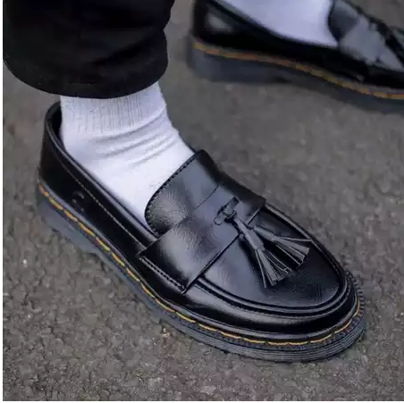 Sepatu Pantofel Docmart Slip On Loafers Pita Terbaru Casual Formal Kerja Kantor Sekolah Hitam Pria Full Black