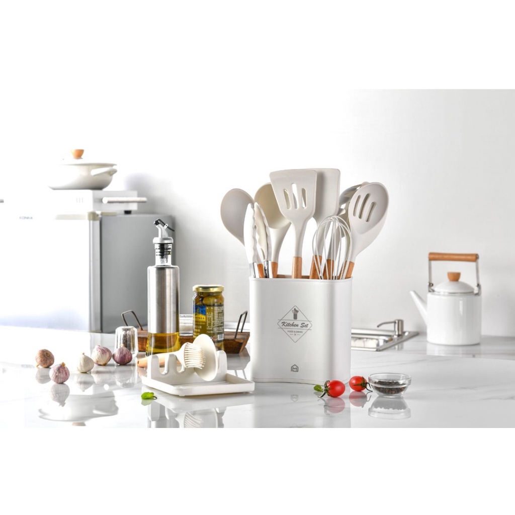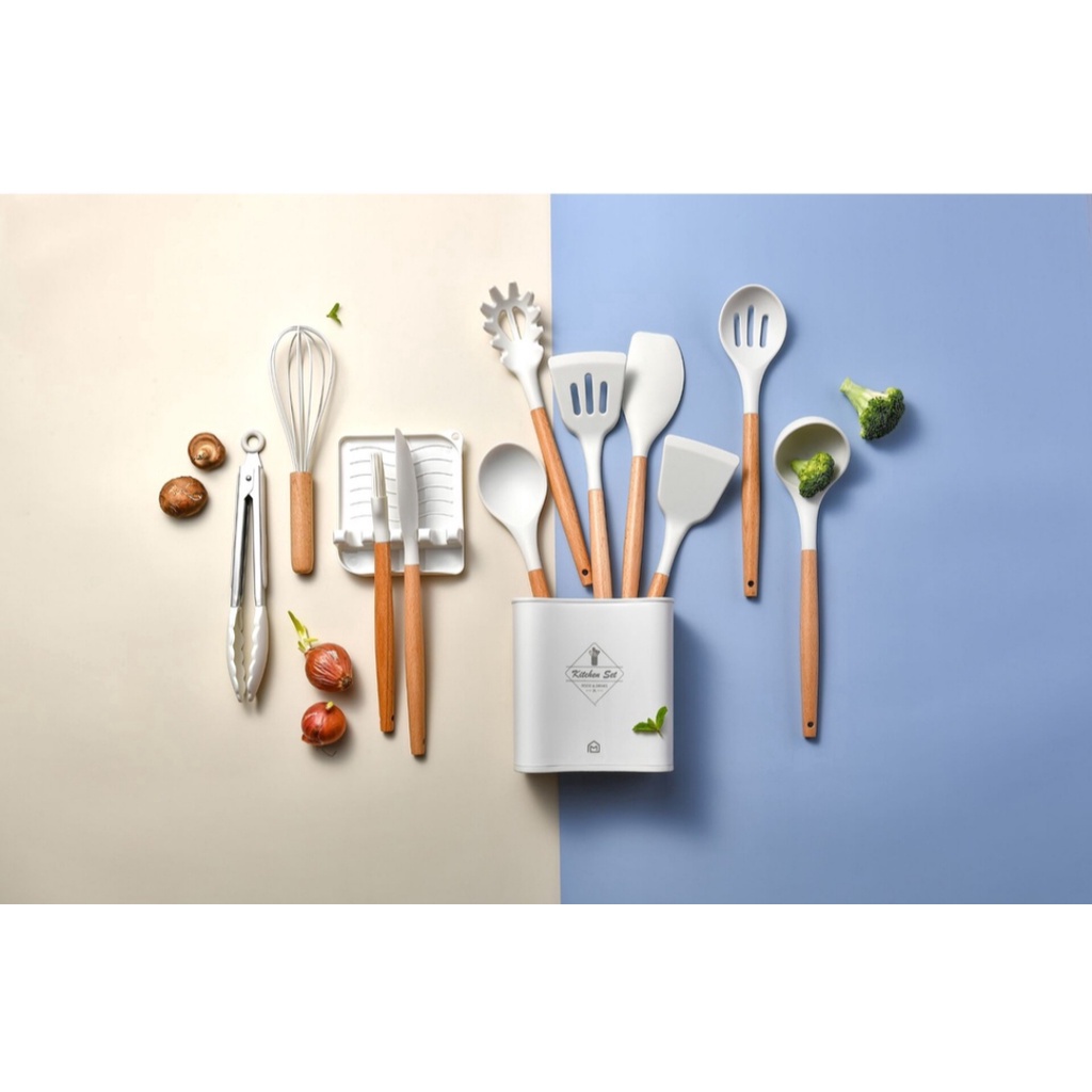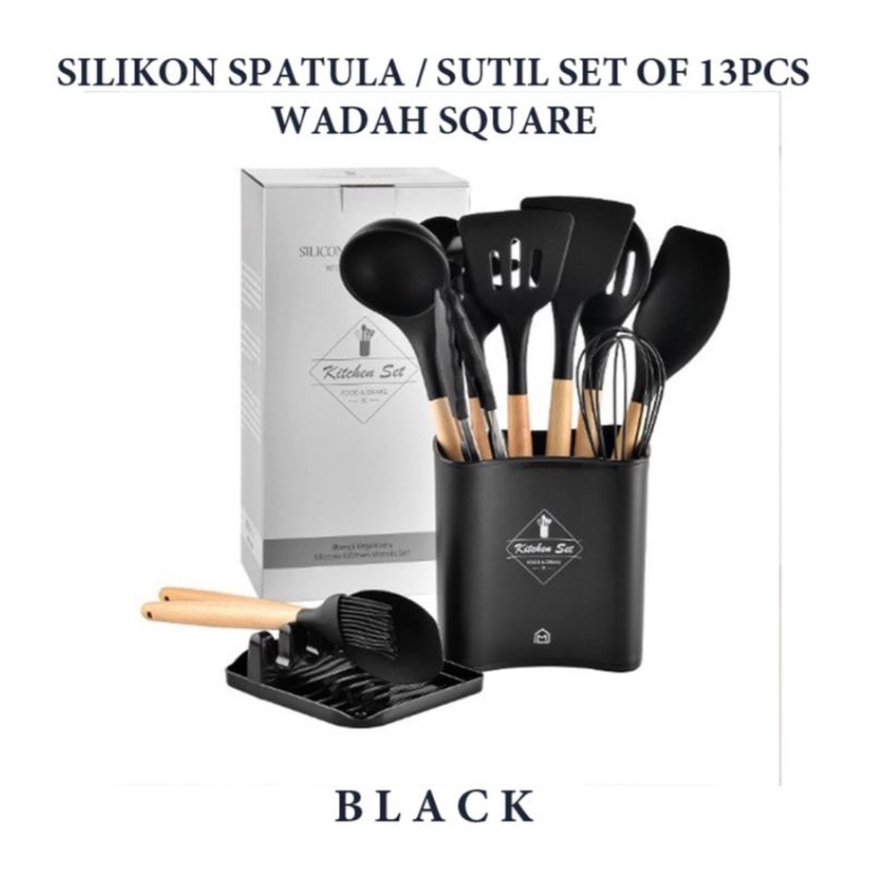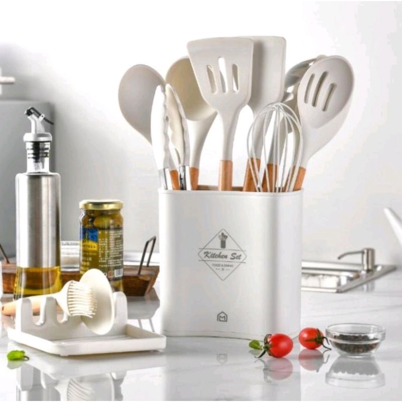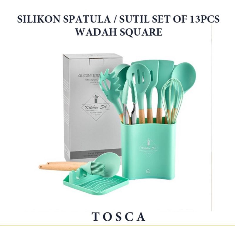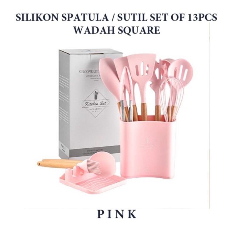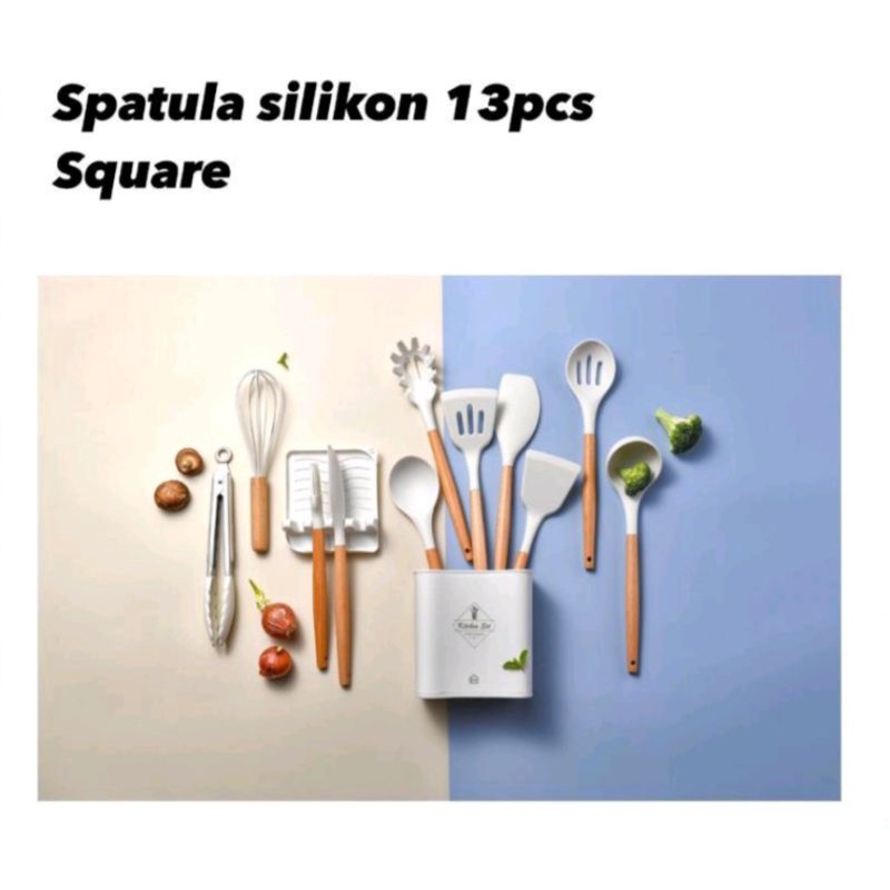 READYYY...SPATULA SQUARE SILIKON SILICONE SET OF 13 PCS WHITE PUTIH ALAT DAPUR