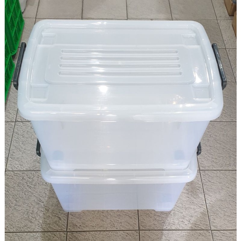 Container Box Roda Ezy CB 45 Liter Bening Transparan Shinpo Kuat Tebal Kotak Plastik Penyimpanan Barang Rak Susun Baju Pakaian Serbaguna Kotak Spare Part Perkakas