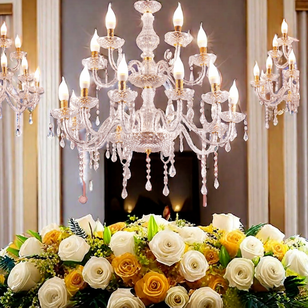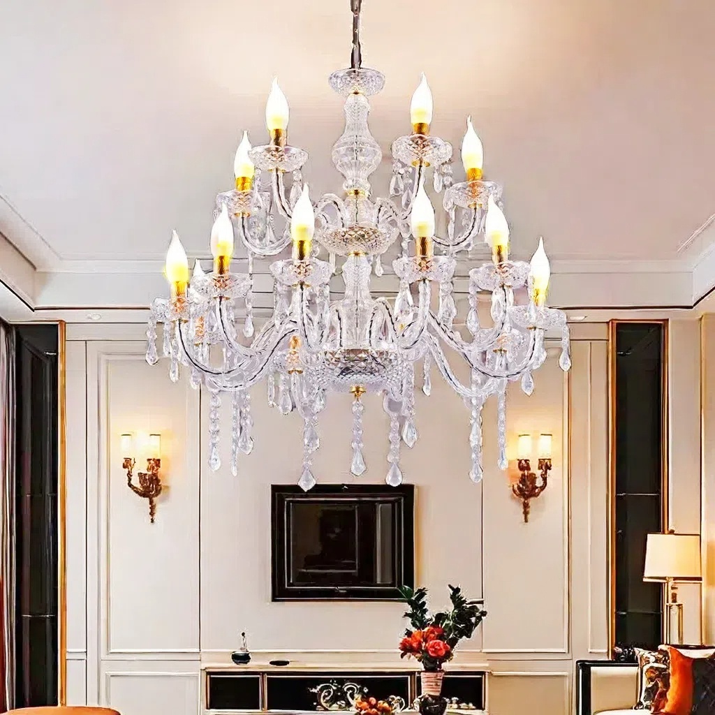 LAMPU GANTUNG KRISTAL AKRILIK ISI 6/8/8+4 LAMPU HIAS GANTUNG BOHLAM TERMASUK BOHLAM LAMPU GANTUNG DEKORASI AMG