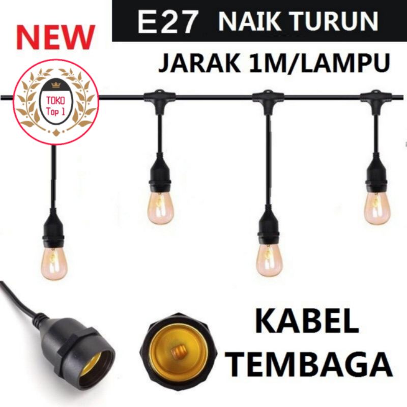 Kabel fitting lampu cafe gantung 10m 10fitting 5m 5fitting 10m 20fitting dekorasi outdoor fitting/ Fitting Lampu Outdoor E27 10m- 10Fitting/10m 20fiting/super murah