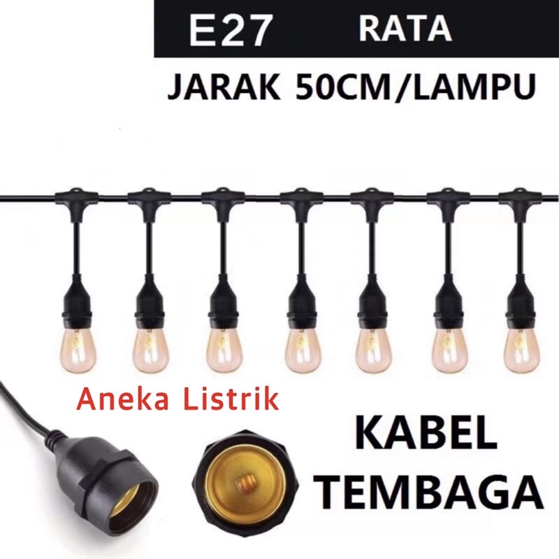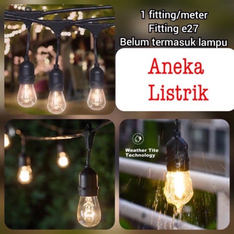 KABEL FITTING LAMPU GANTUNG E27 10 METER 10 FITTING OUTDOOR TAMAN WATERPROOF