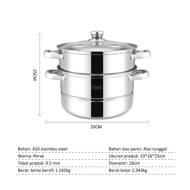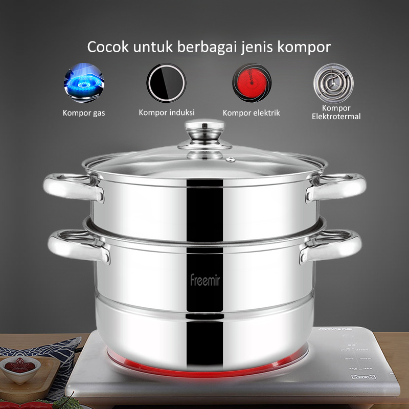 [BIG SALE] FREE GIFT - freemir Panci Kukus 2 Susun Besar Steamer Dandang Kukusan Tingkat Multifungsi