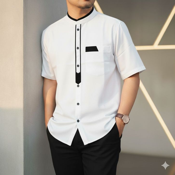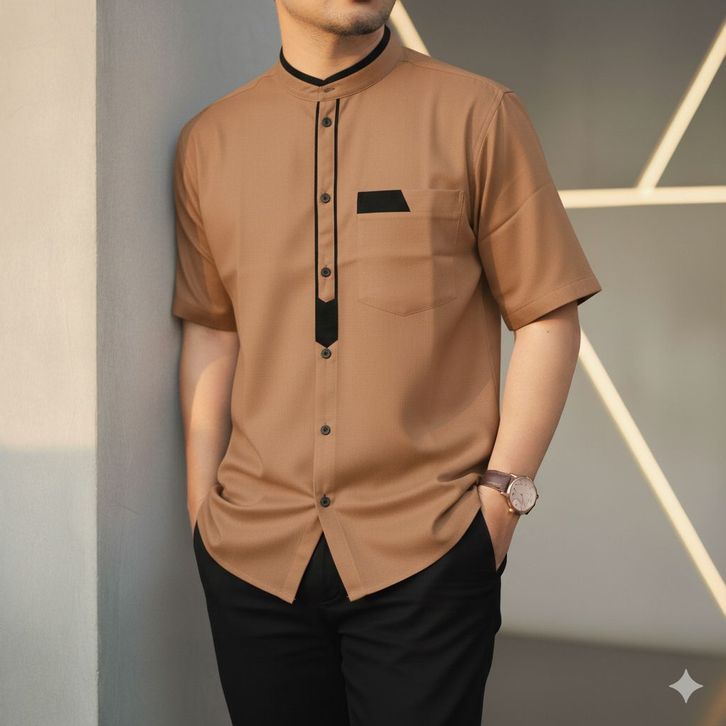 kemeja koko pria Lengan pendek Motif Polos Katun Toyobo