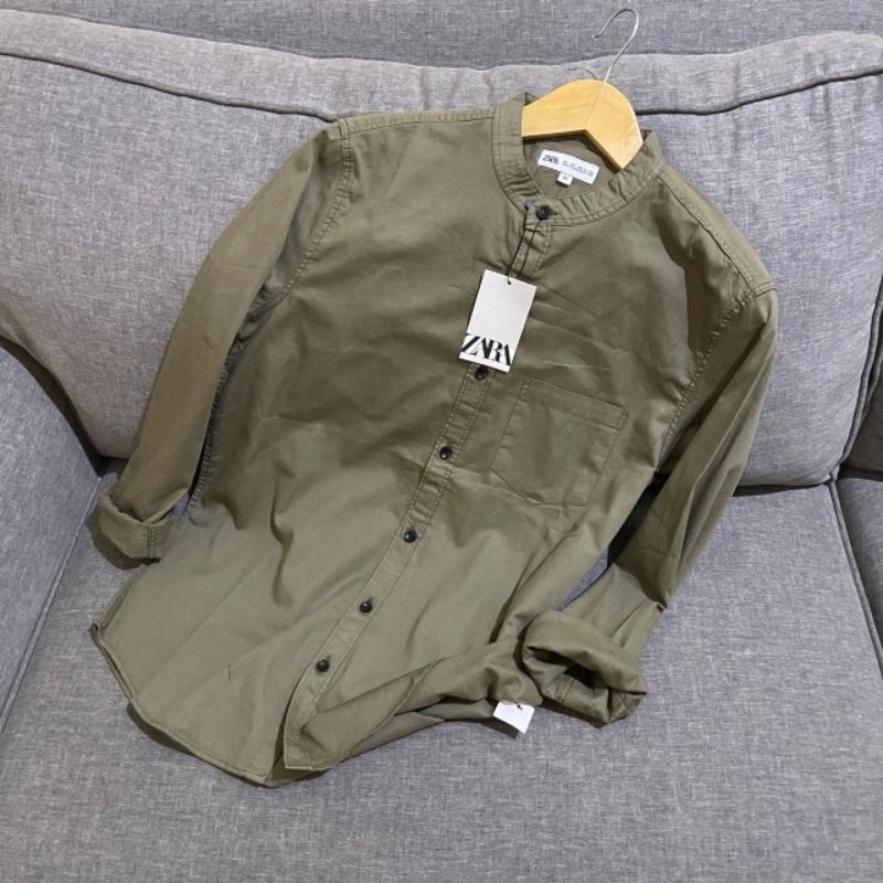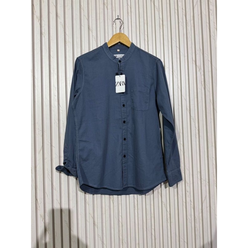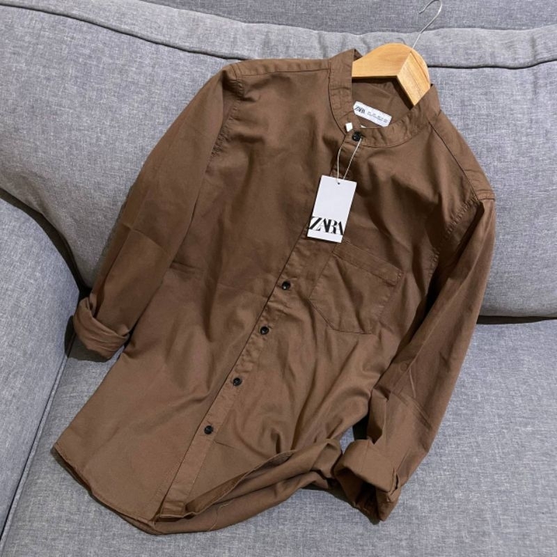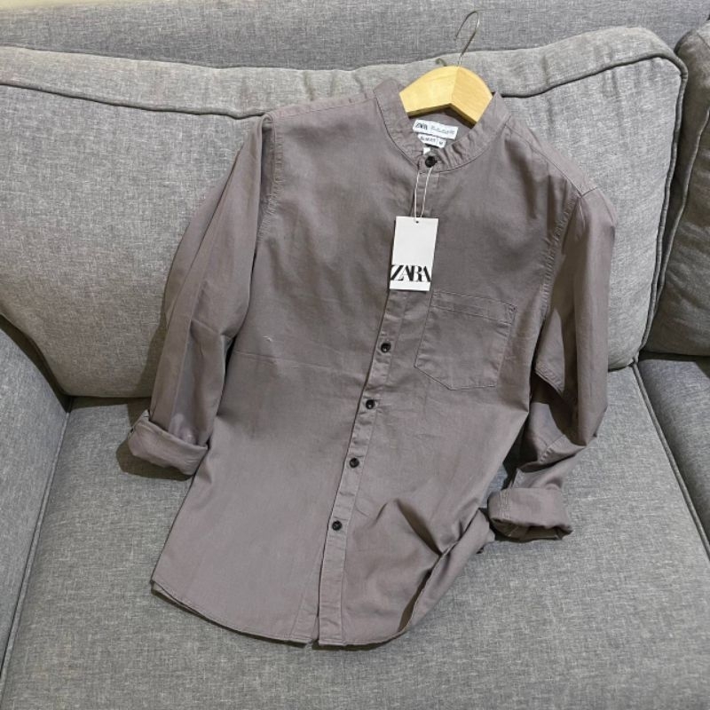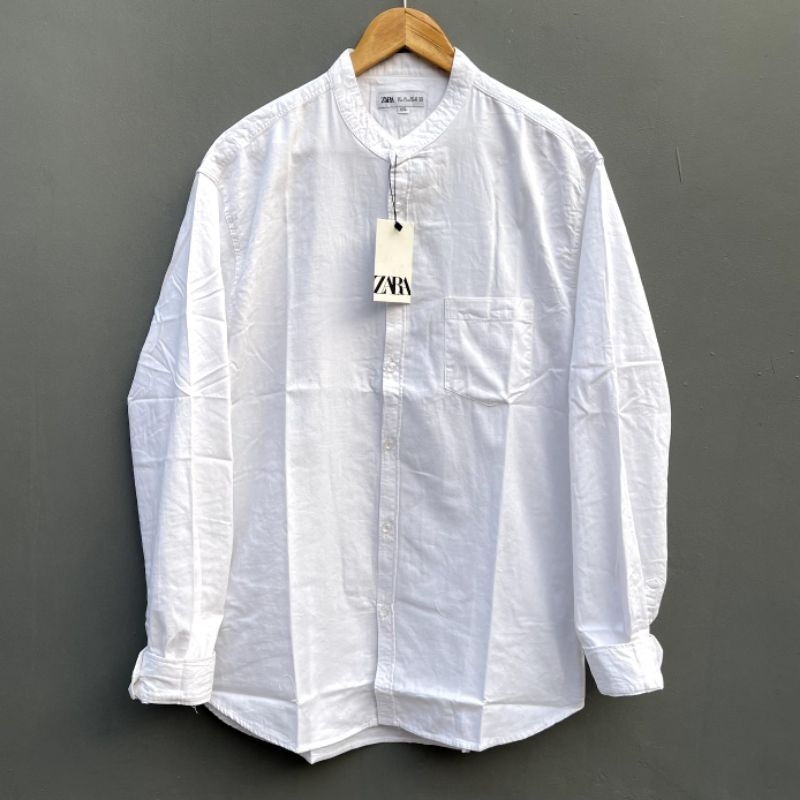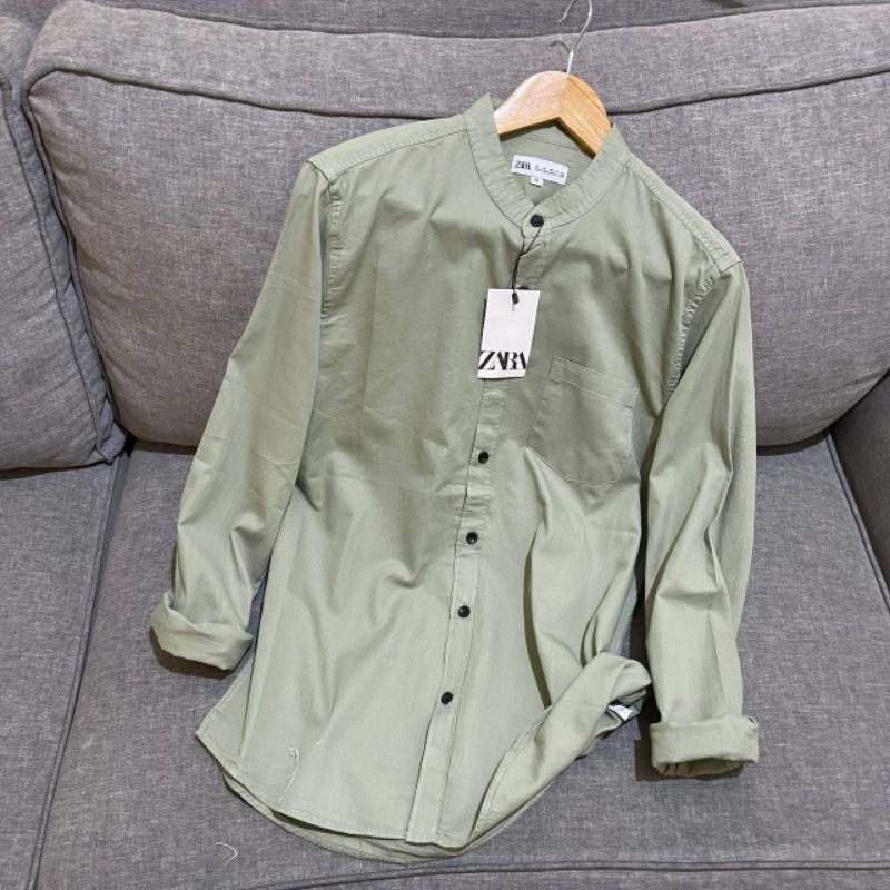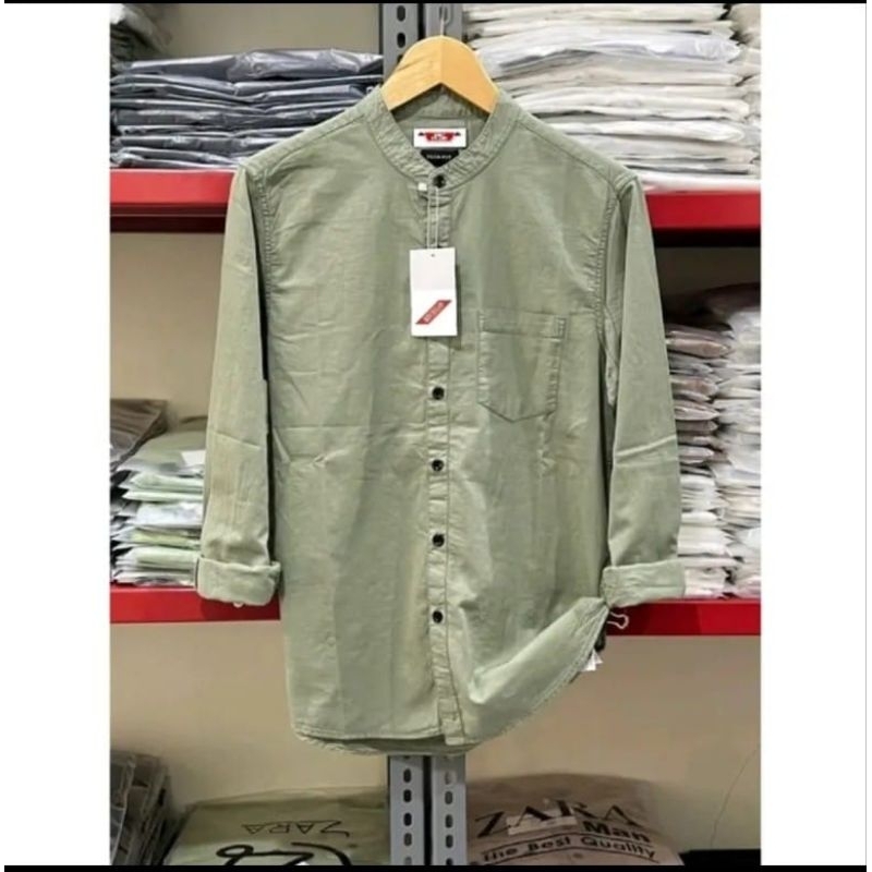 kemeja Zara size jumbo polos pria lengan panjang kerah kemko/sanghai size jumbo slimfit katun twill