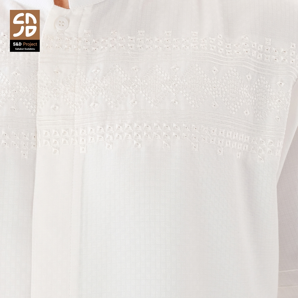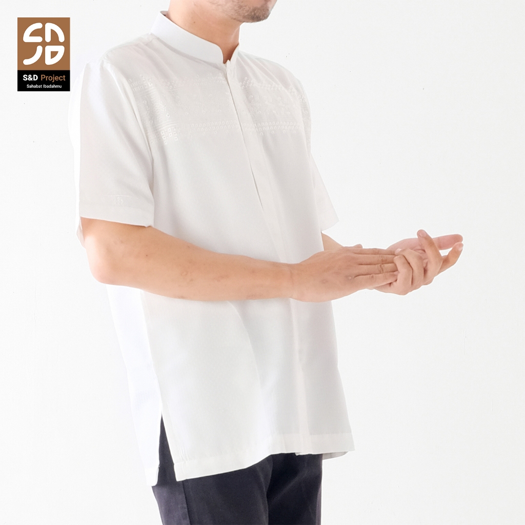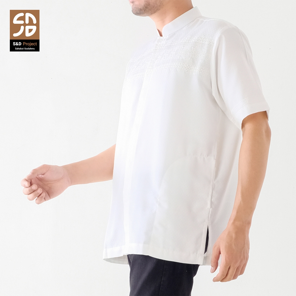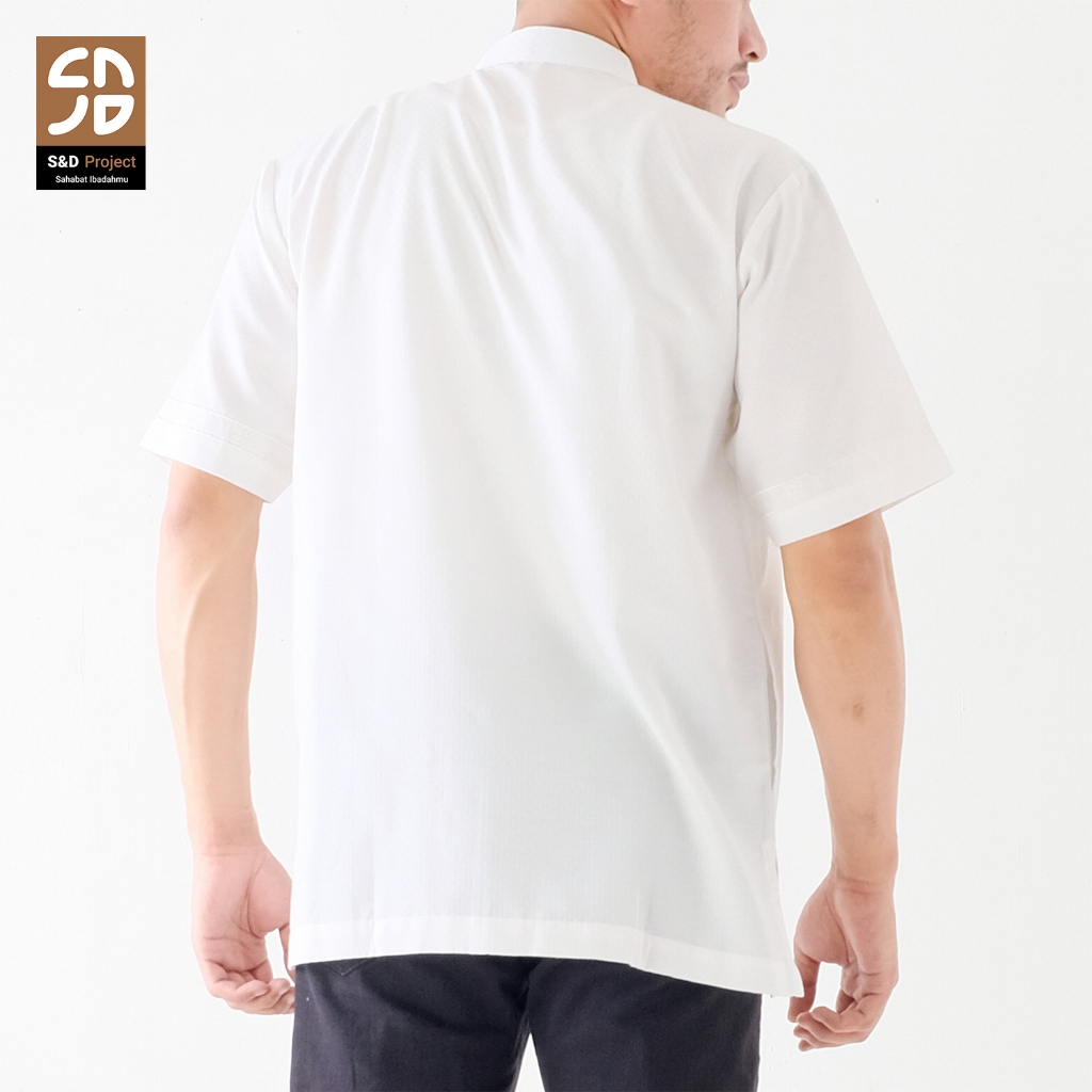 S&D Project Baju Koko Poli Katun Bordir Lengan Pendek Ukuran S M L XL XXL 3XL 4XL - Putih Tulang