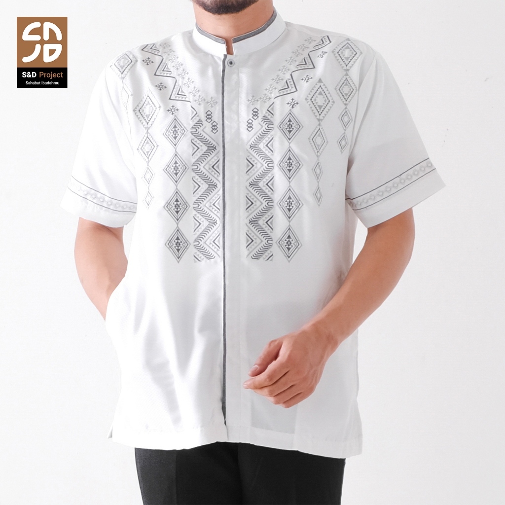 S&D Project Baju Koko Poli Katun Bordir Lengan Pendek Ukuran S M L XL XXL 3XL 4XL - Putih Tulang