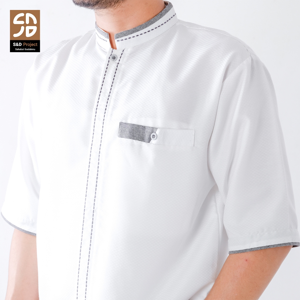 S&D Project Baju Koko Poli Katun Bordir Lengan Pendek Ukuran S M L XL XXL 3XL 4XL - Putih Tulang