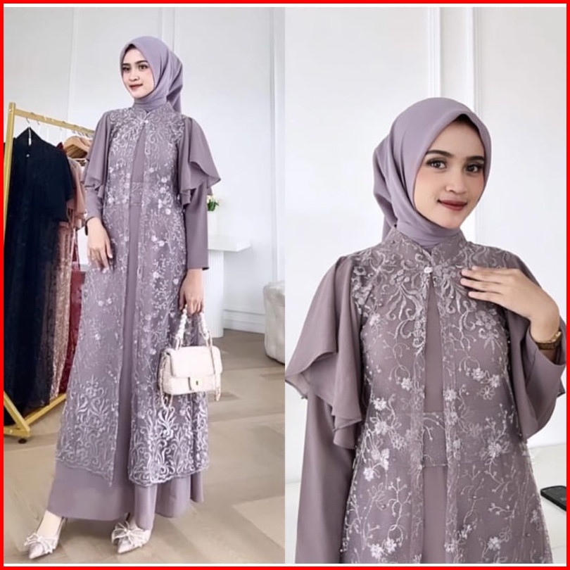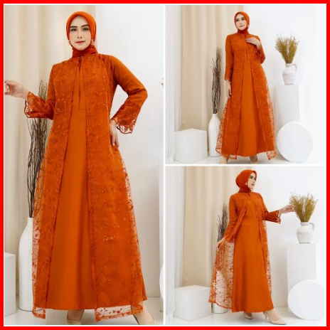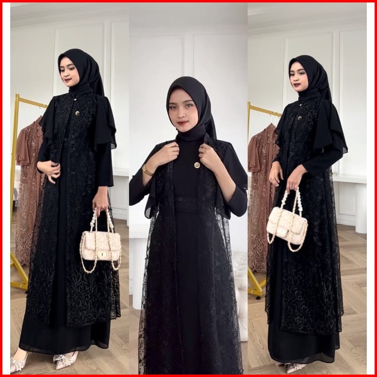 Georgina Dress Ceruty Babydoll Mix Brukat Premium Dress Pesta Wanita Terbaru Elegan Baju Kondangan Gamis Brukat