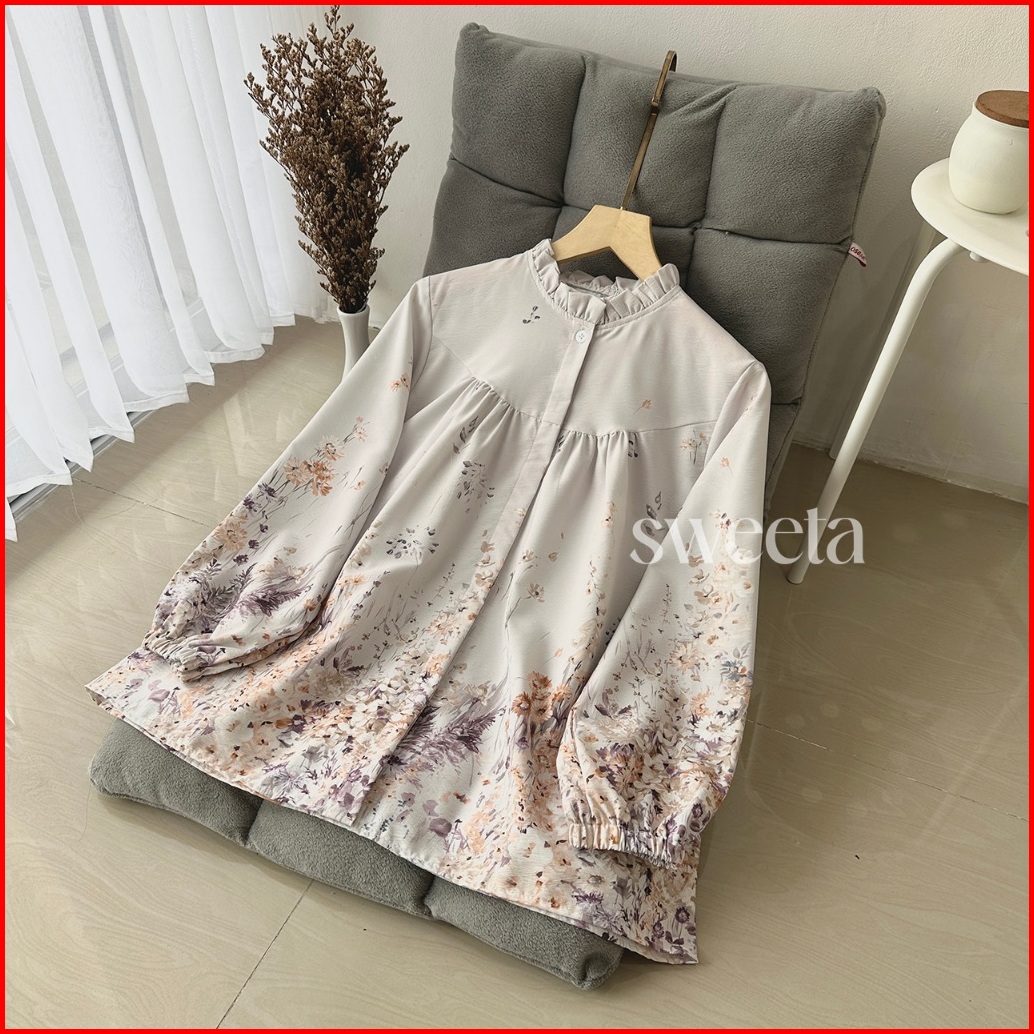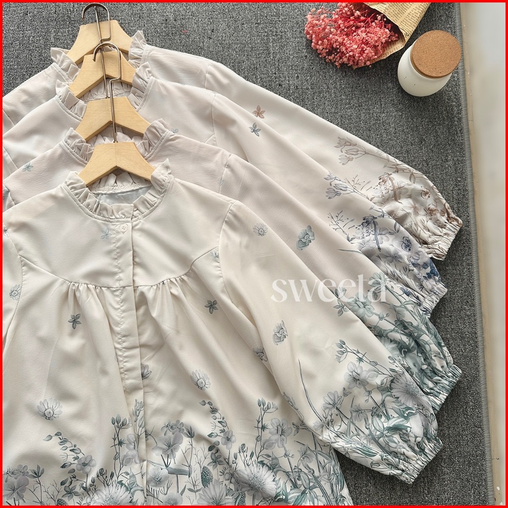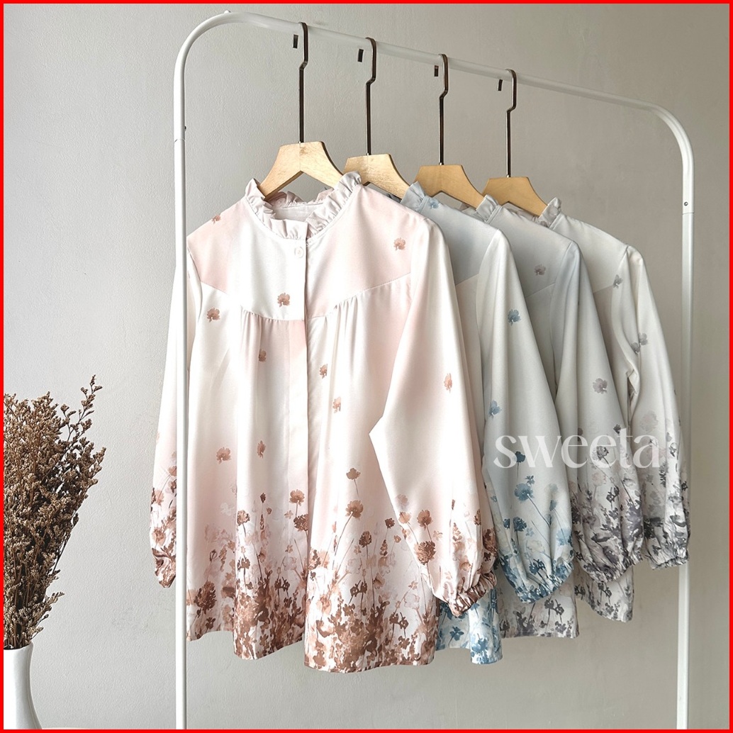 Sweeta Blus U Rample Motif Flower Silk Cotton Ld 115 Cm Korea Style Kancing Dapat Dibuka Atasan Pakaian Wanita Muslim Ta
