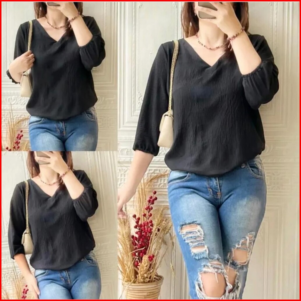 Atasan Wanita Blouse Crinkle Airflow- Vinex Bahan Crinkle Airflow