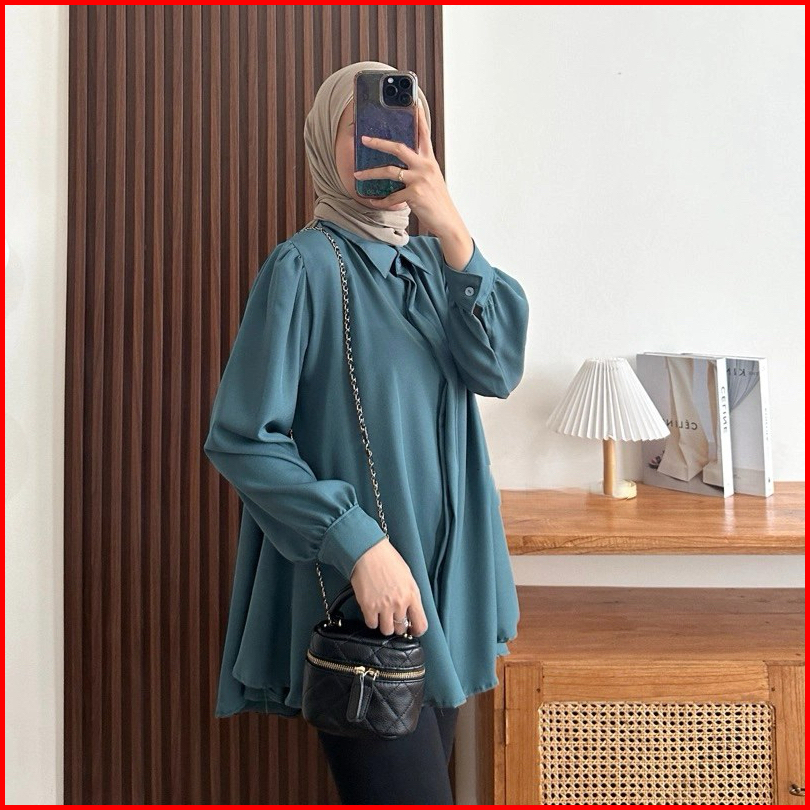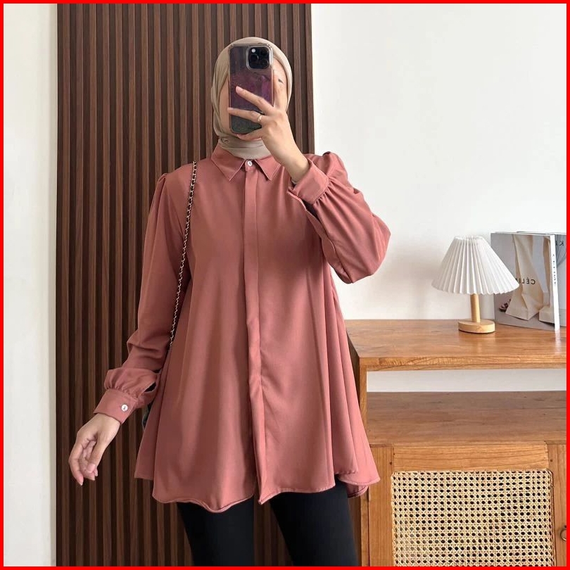 Kinka Shakilla Blouse Kemeja Basic Wanita Polos Baju Atasan Kemeja Wanita Muslim Lengan Panjang