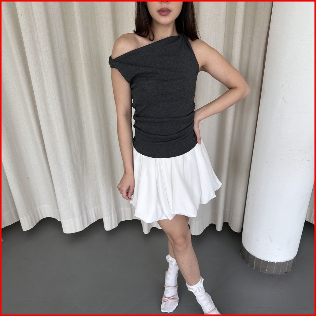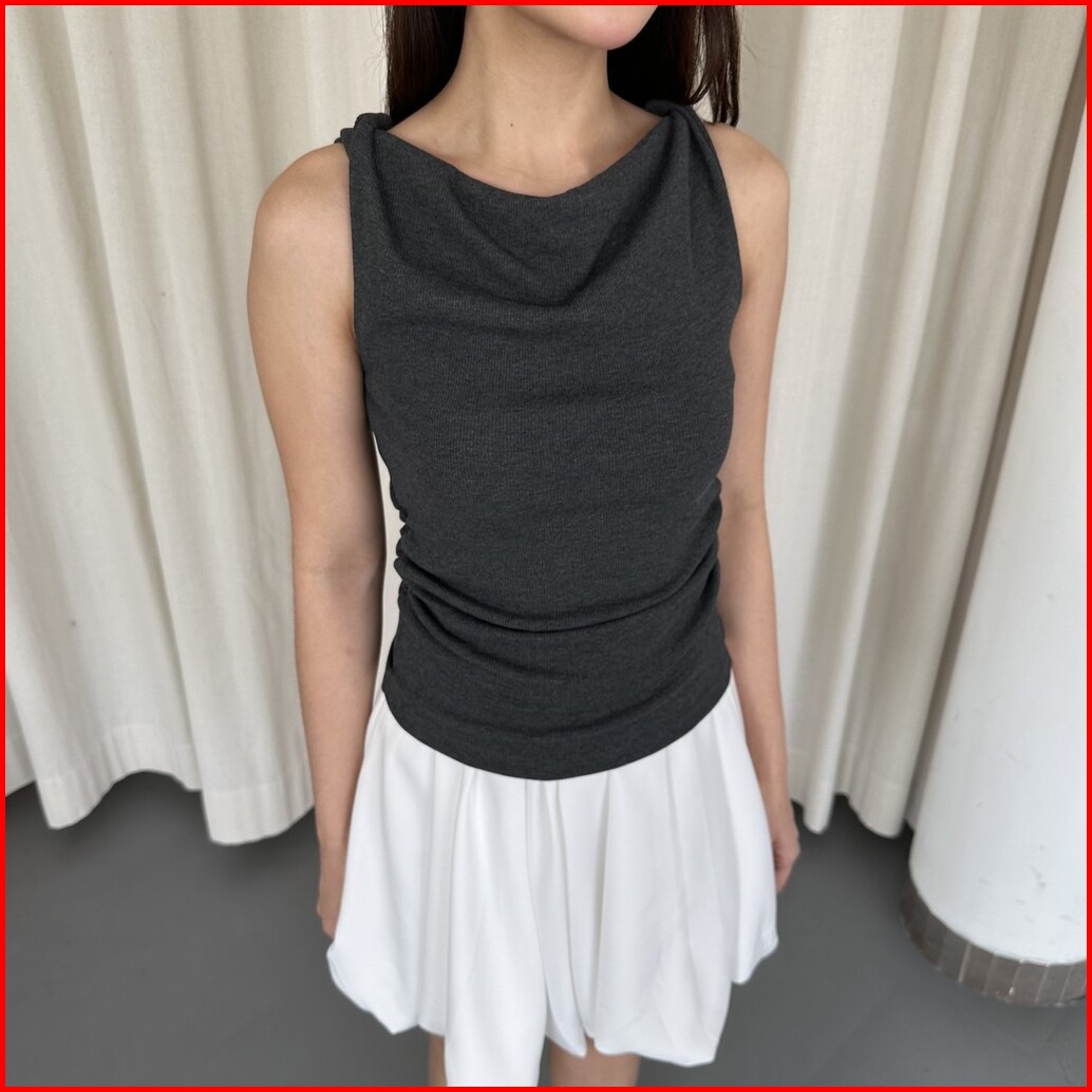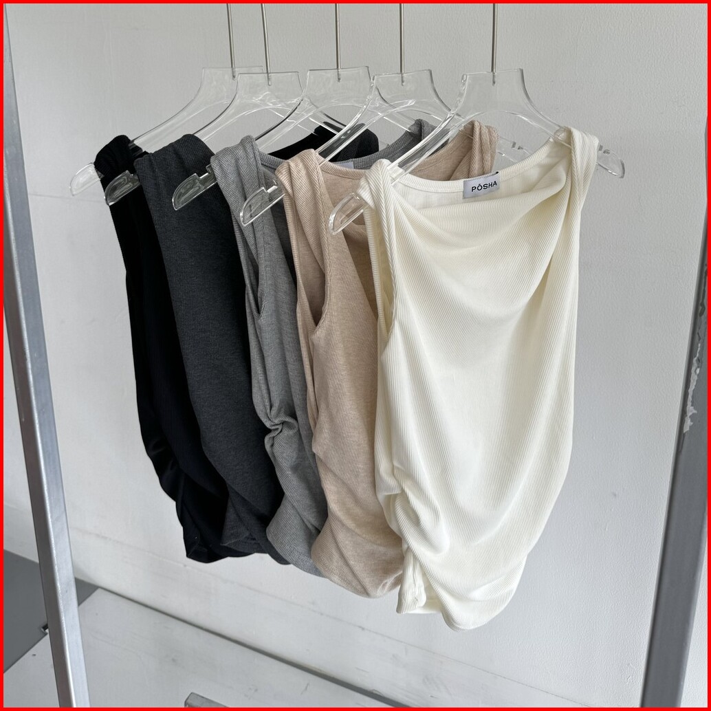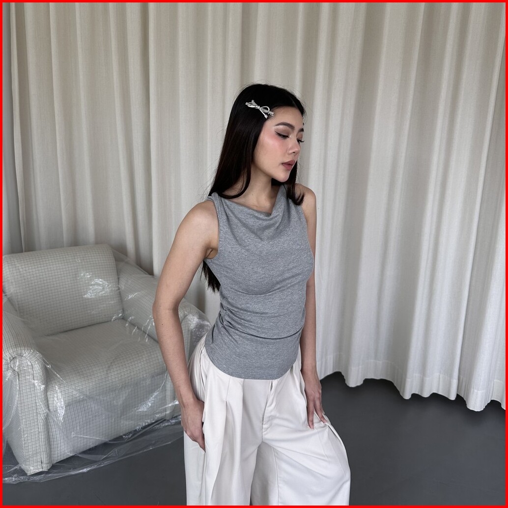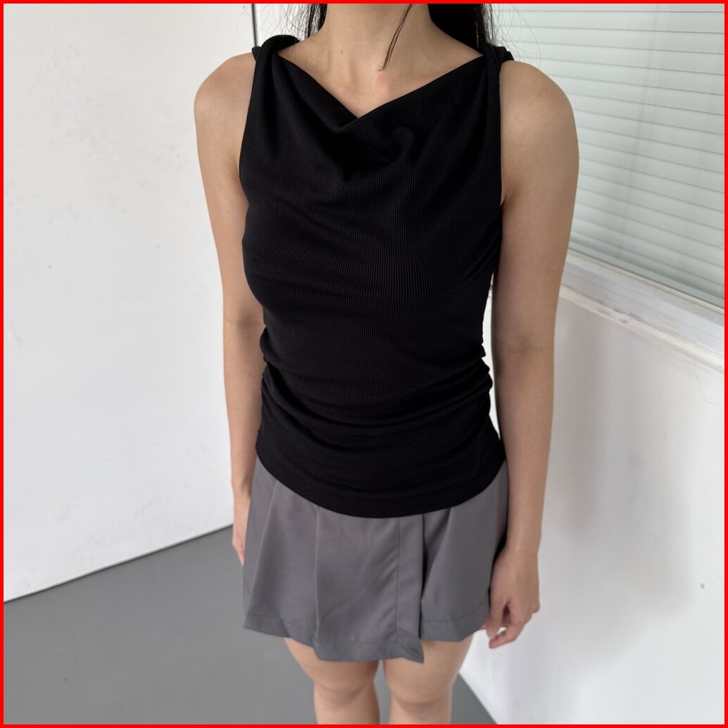 Lila Top - Atasan Tanktop Ribbed Knit Drape Top Cowl Neck Off Shoulder Kaos Racer Tee Basic Baju Crop Top Summer Wanita