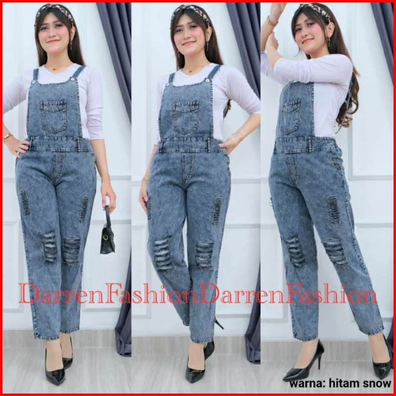 Celana Overall Sobek. Overall Jeans Snow. Overall Jumbo Snow