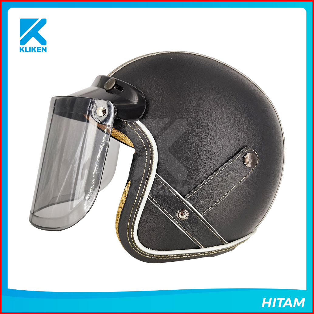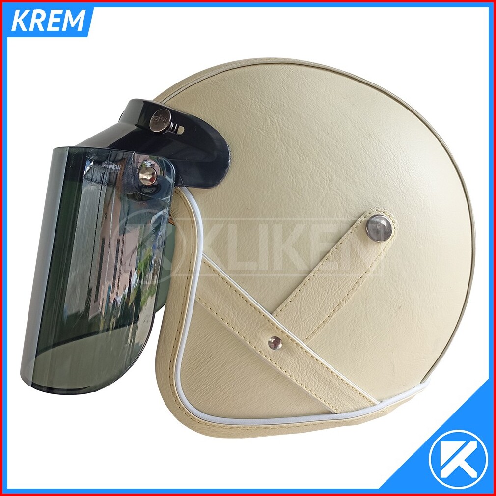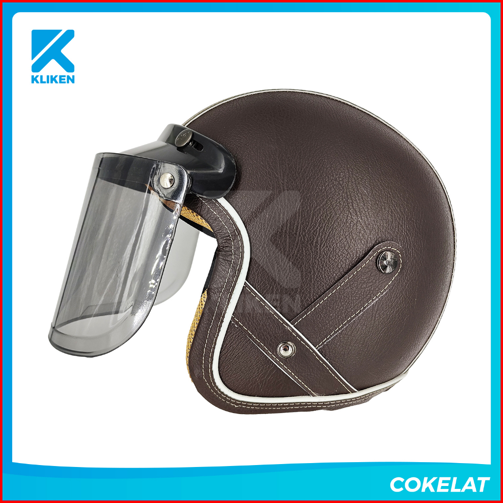 Helm Bogo Dewasa Full Leher Pres Kulit Dengan Kaca Datar