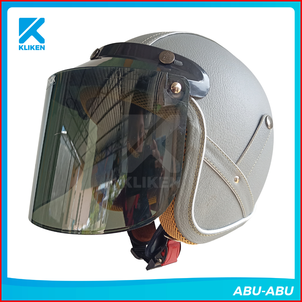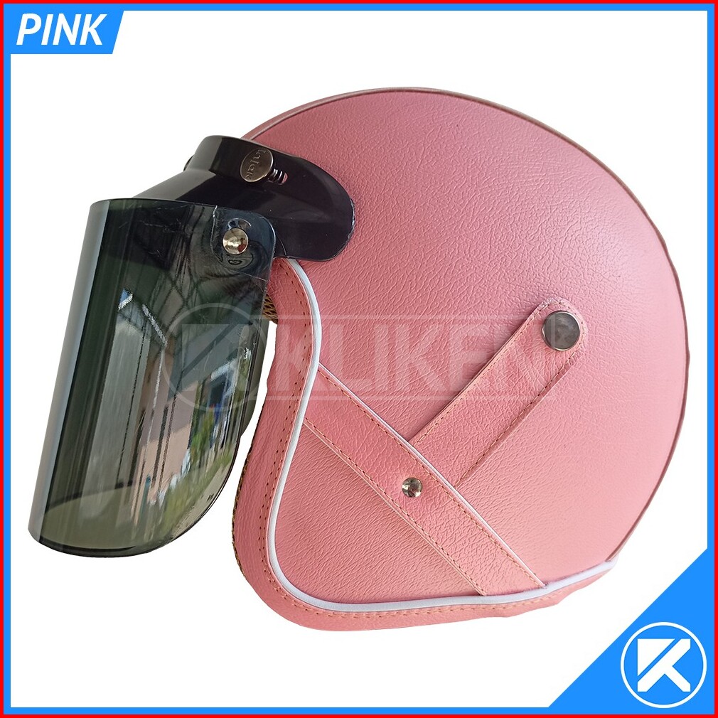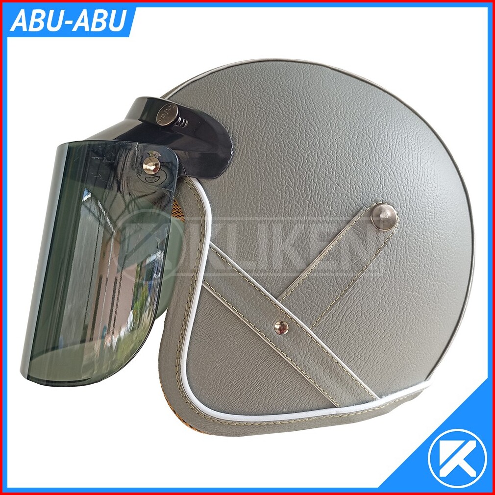 Helm Bogo Dewasa Full Leher Pres Kulit Dengan Kaca Datar