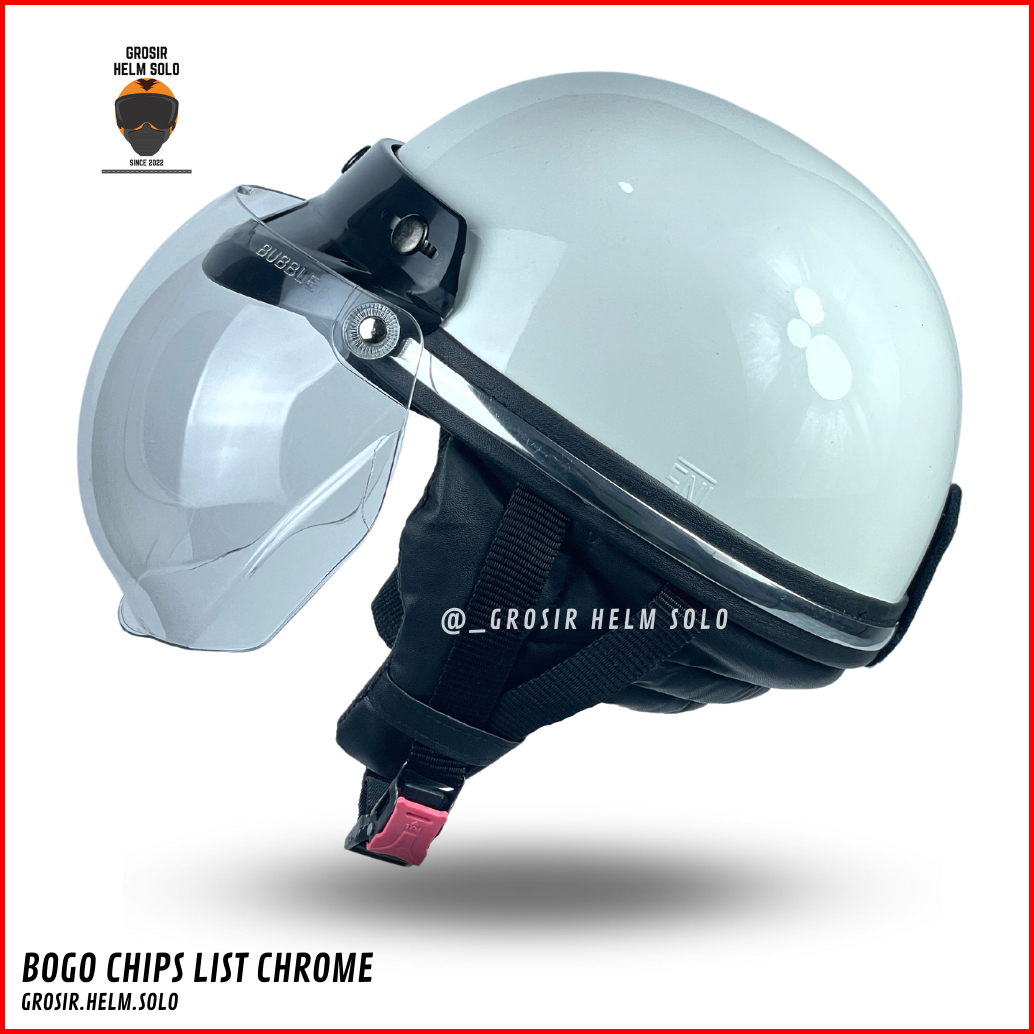 Helm Chips Bogo Dewasa Retro List Chrome Polos Kaca Cembung Hitam Bening Sni