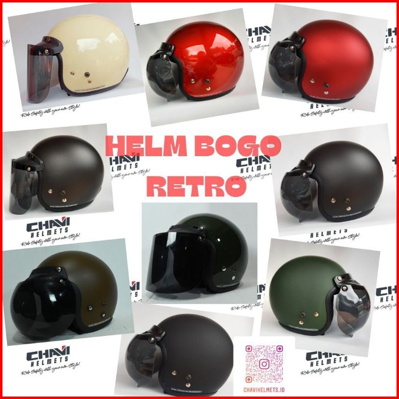 Helm Bogo Retro Dewasa Sni Untuk Dewasa Wanita Dan Pria Flat Visor Smoke Clear