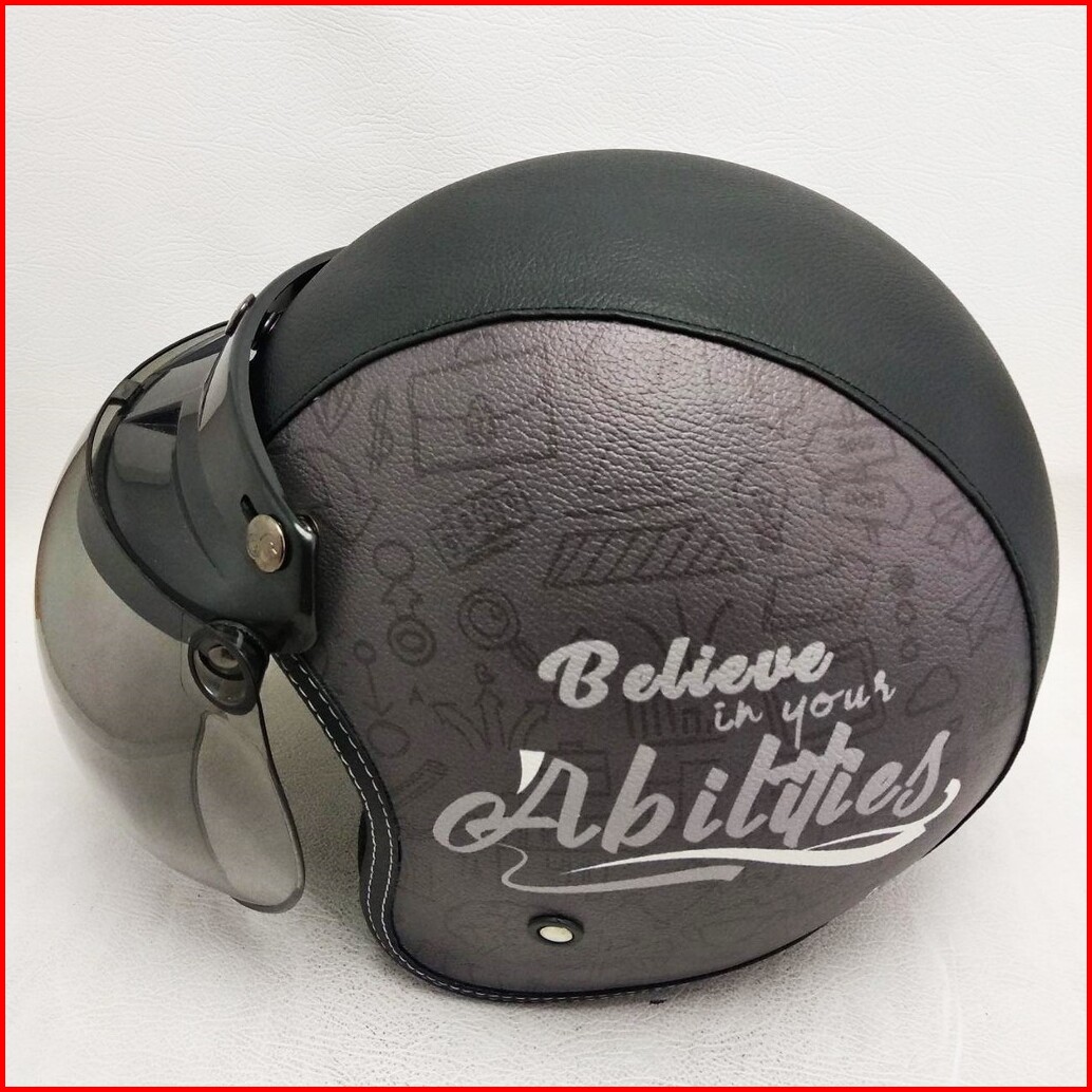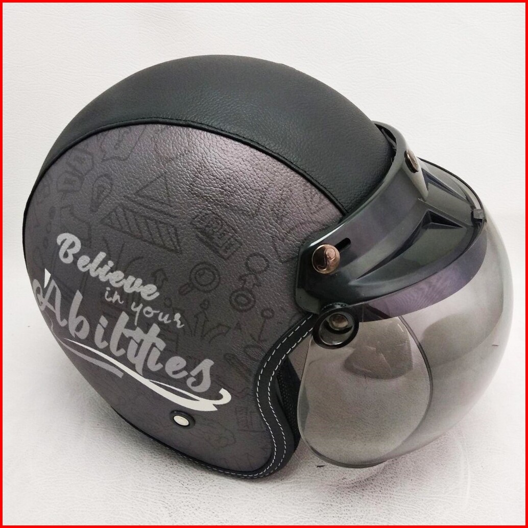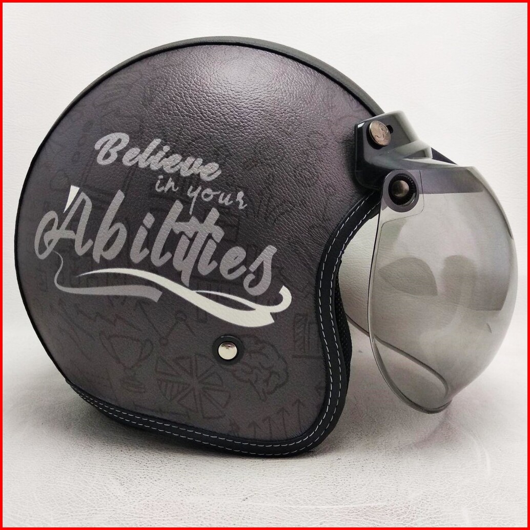 Helm Retro Bogo Kulit Believe In Your Ability Kaca Bubble Half Face Sni