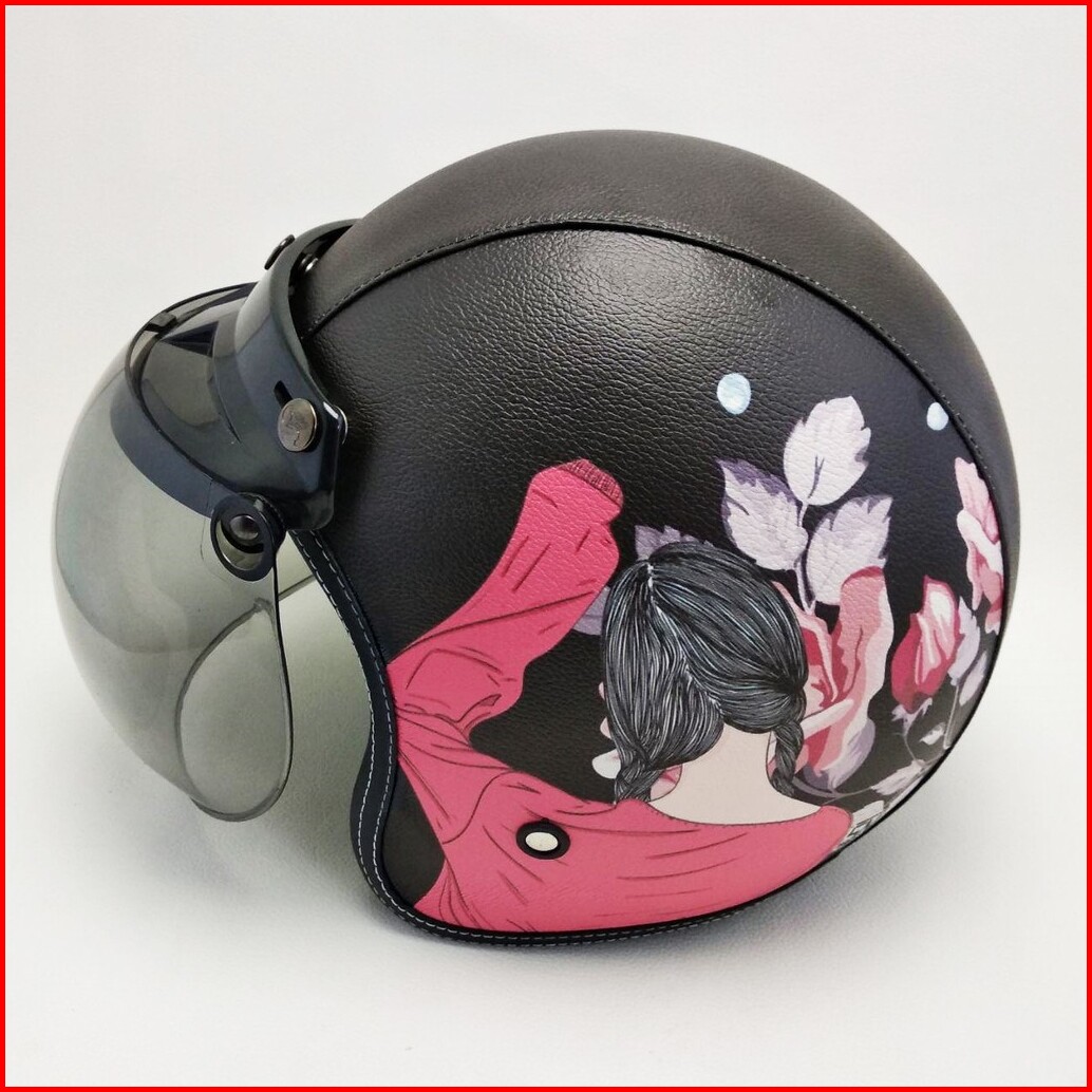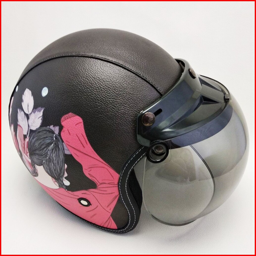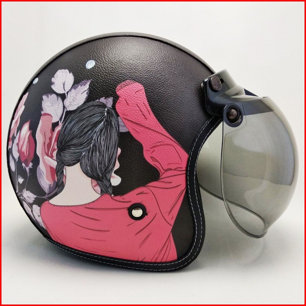 Helm Bogo Retro Kulit Rose Girl Klasik Kaca Bubble Halfface