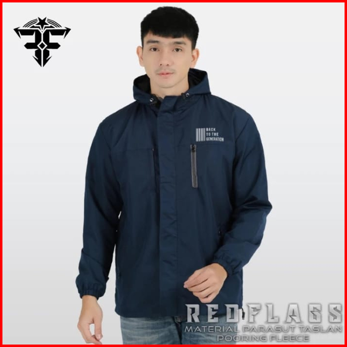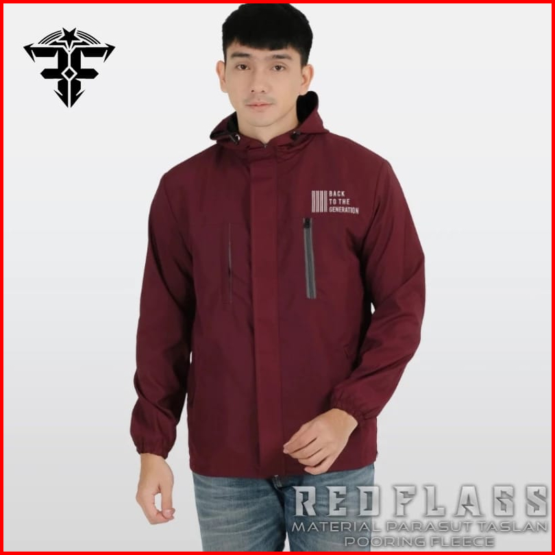 Red Flags Jaket Vintage Parasut Outdor Casual Pria Ritsleting Taslan Premium Windbreaker Lengan Panjang Logo Bordir Orig
