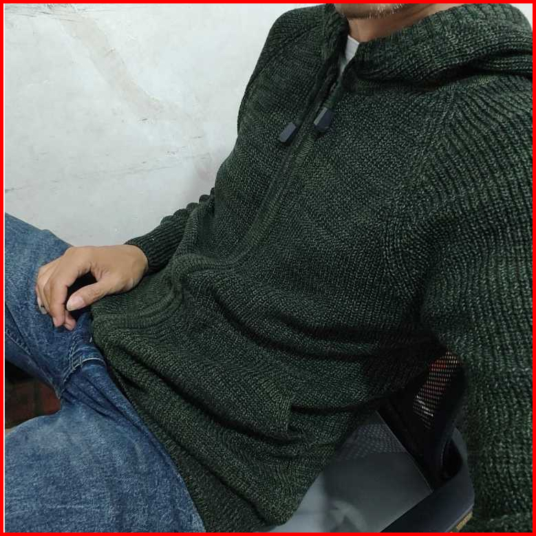 Boneh Sweater Rajut Pria Hoodie Tebal Sweter Rajut Resleting Depan Jaket Rajut Hudie Korea Original