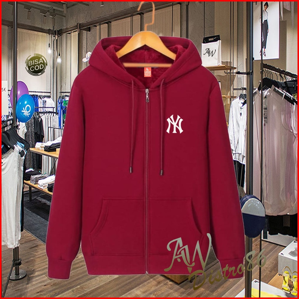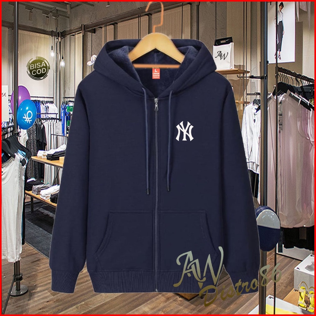 Jaket Distro New York Text Putih Premium Quality Sweater Tulisan Jaket Kata-kata Hoodie Sablon