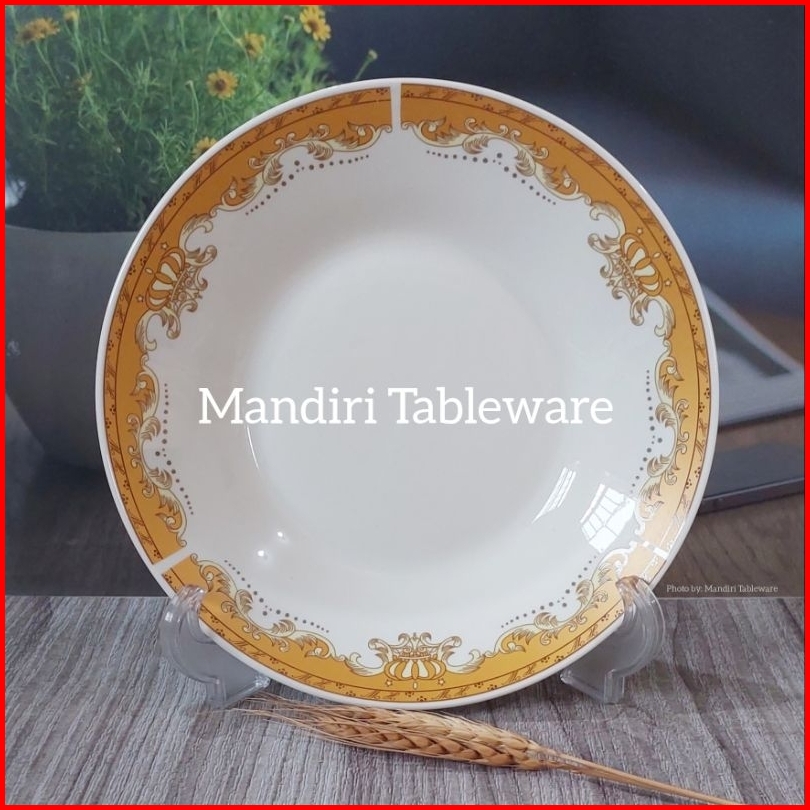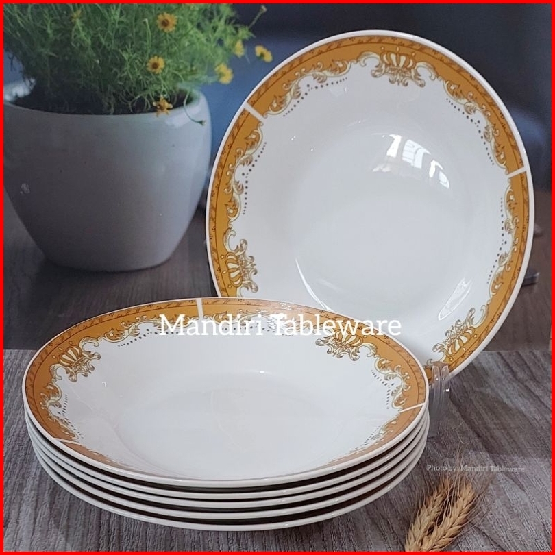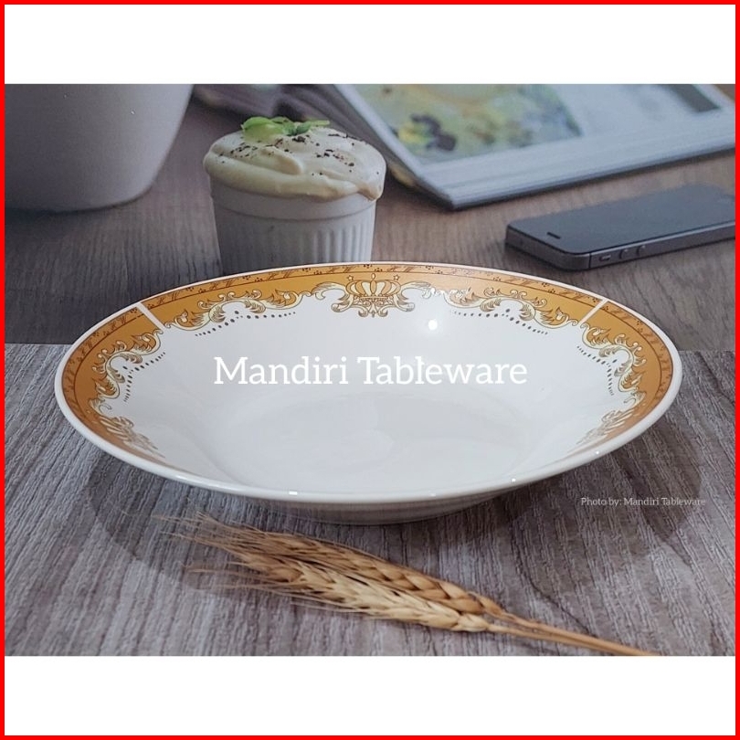 Piring Makan Cekung Keramik 23 Cm Motif Mahkota Best Quality Isi 6 Pcs