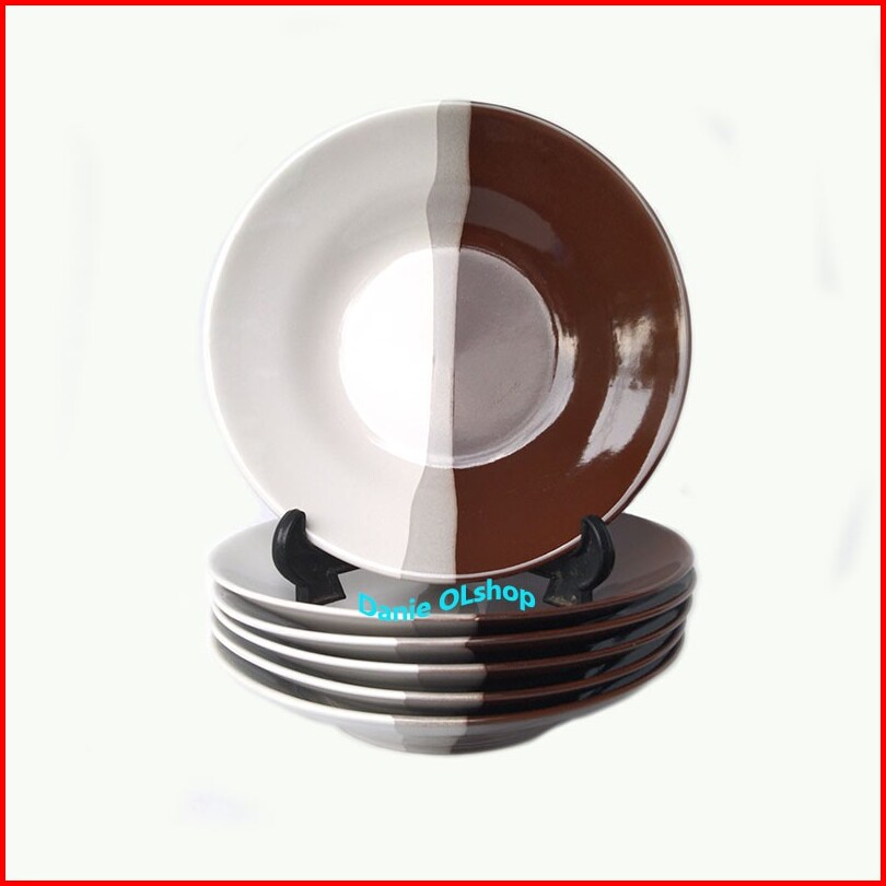 6 Pcs Piring Cekung Keramik Two Tone 20 5 Cm Kaibon