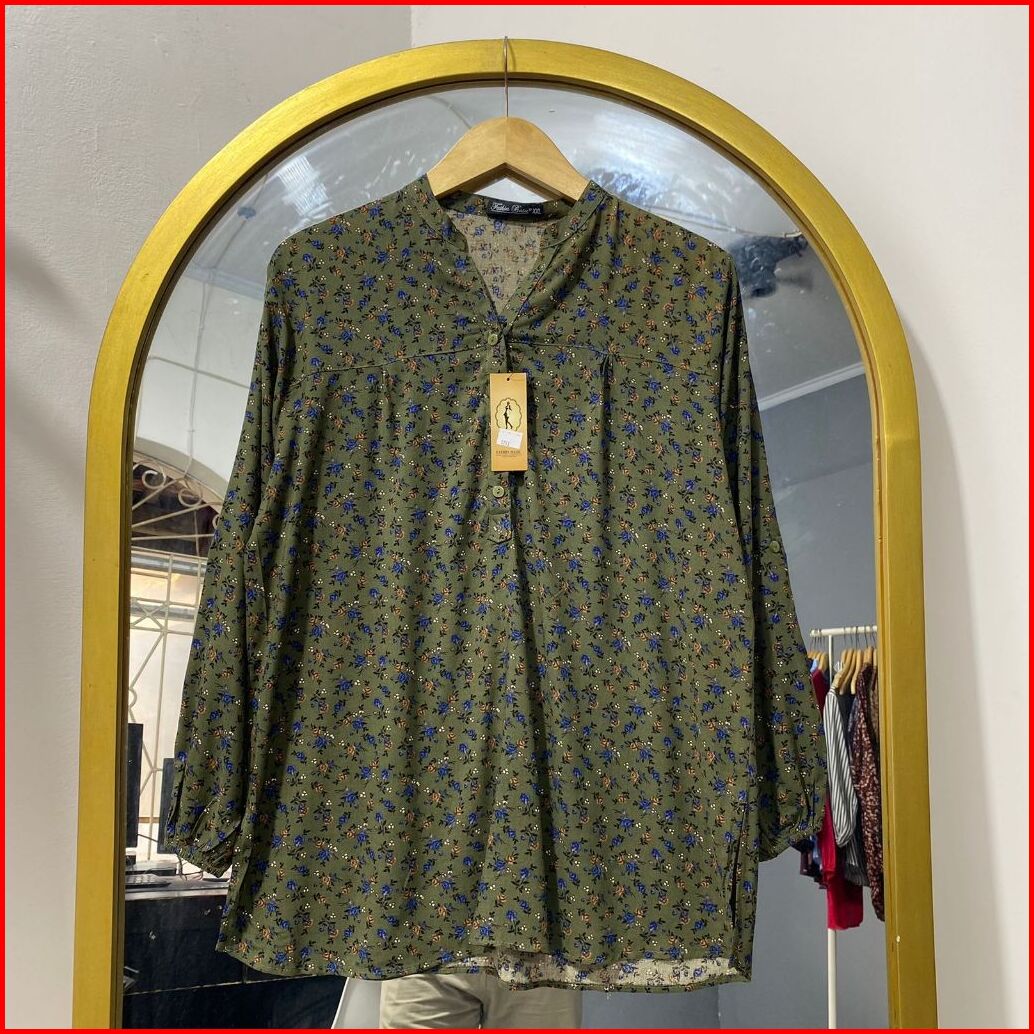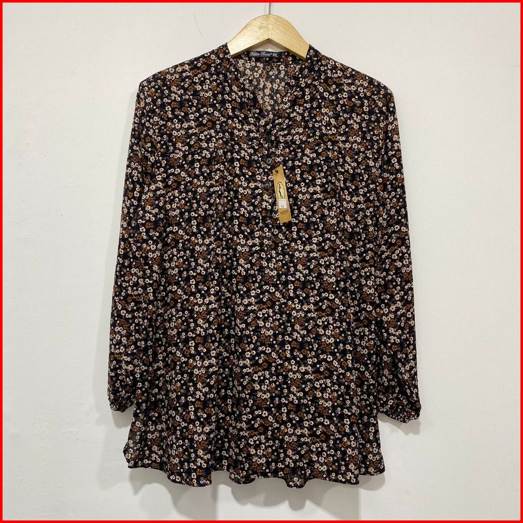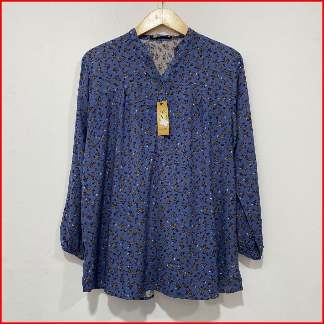Atasan Wanita Blouse Kemeja Kerah Shanghai Motif Bunga-bunga Kembang Lengan Panjang Busui Friendly