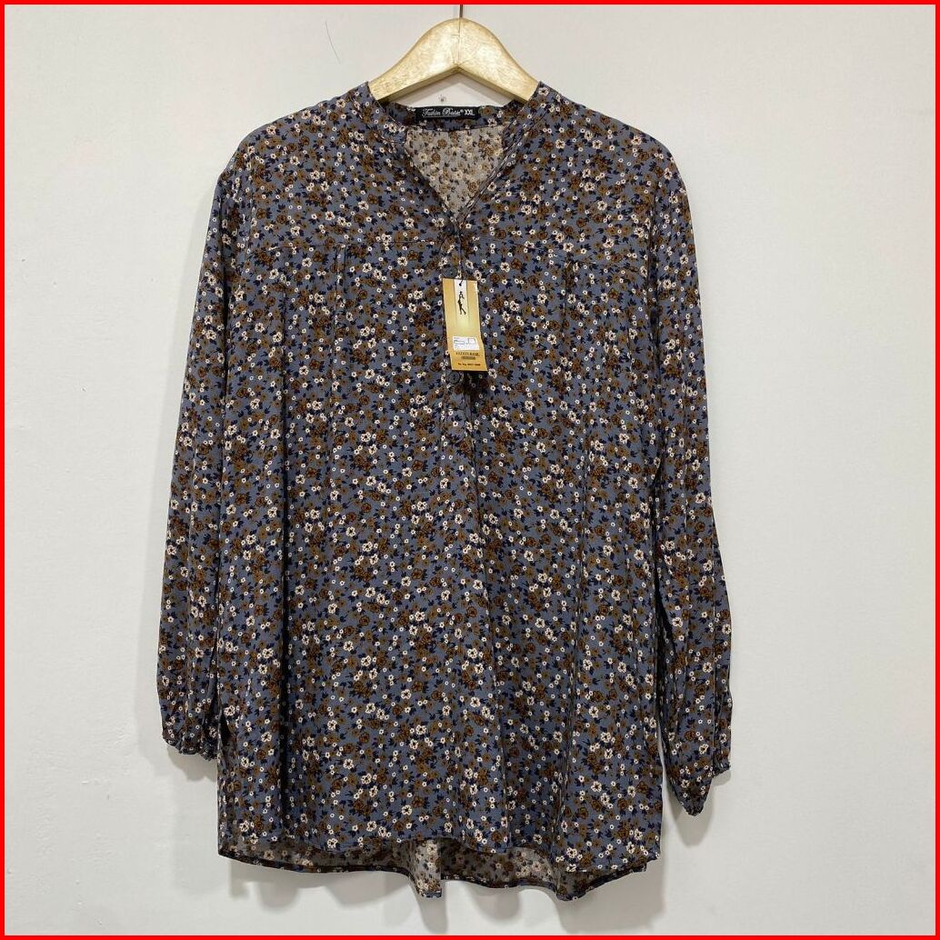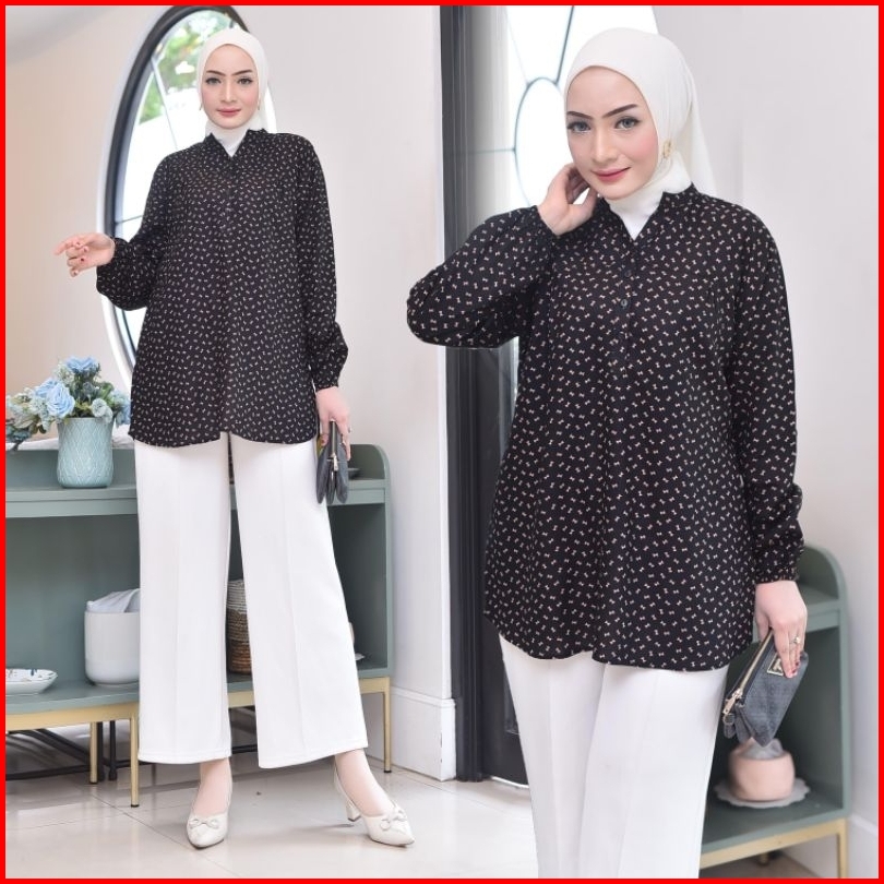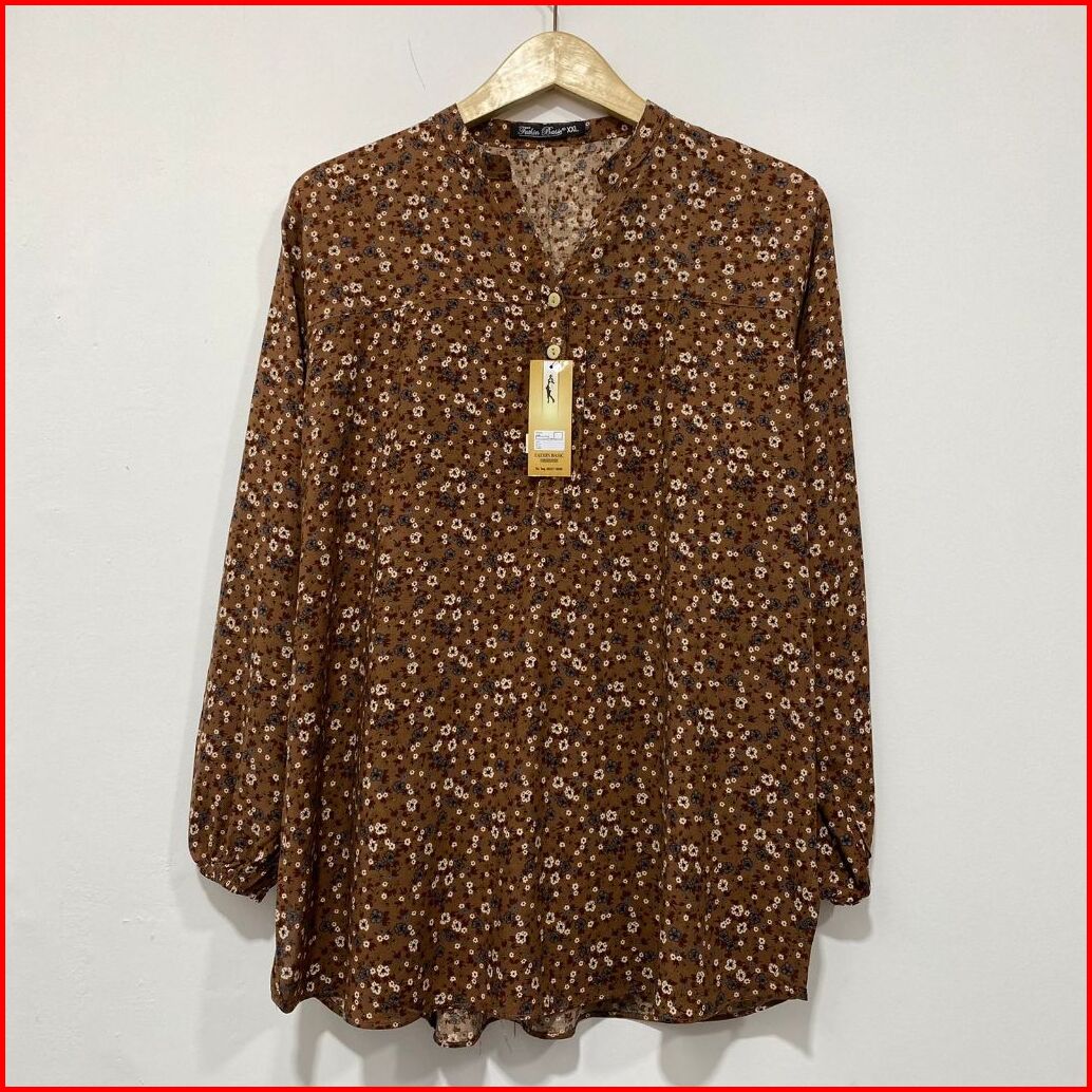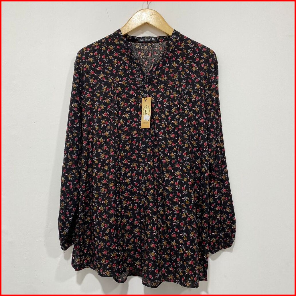 Atasan Wanita Blouse Kemeja Kerah Shanghai Motif Bunga-bunga Kembang Lengan Panjang Busui Friendly