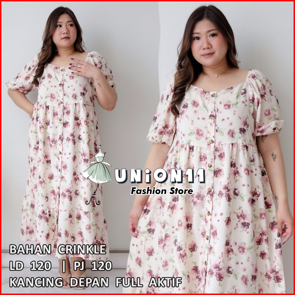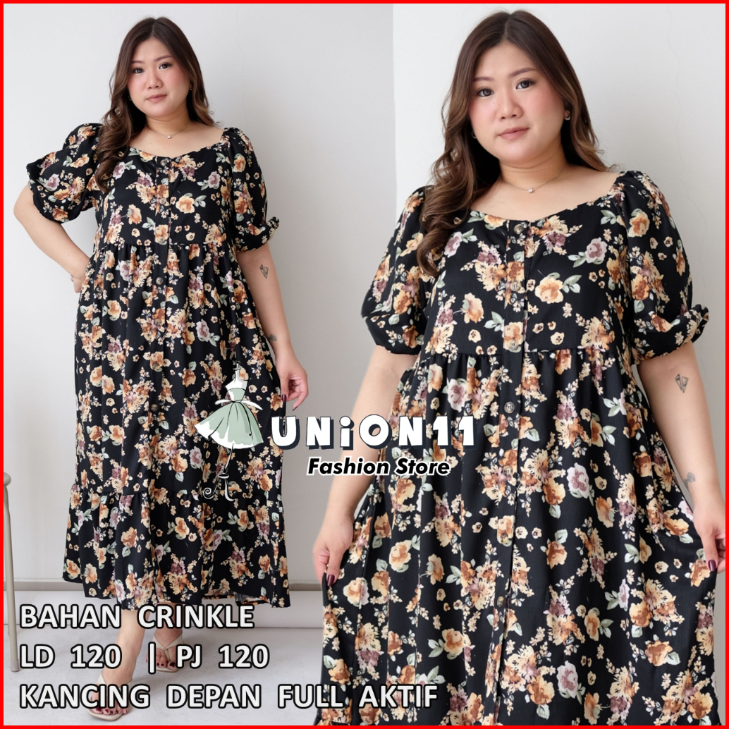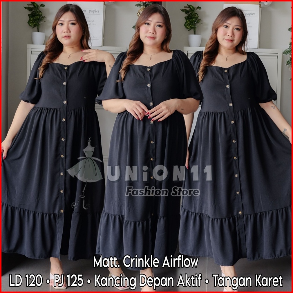 Union11 - Dress Jumbo Wanita Ld 120 Baju Jumbo Wanita Maxi Jumbo Bahan Crinkle Dress Jumbo Wanita Muat Bb 90 Kg Damian