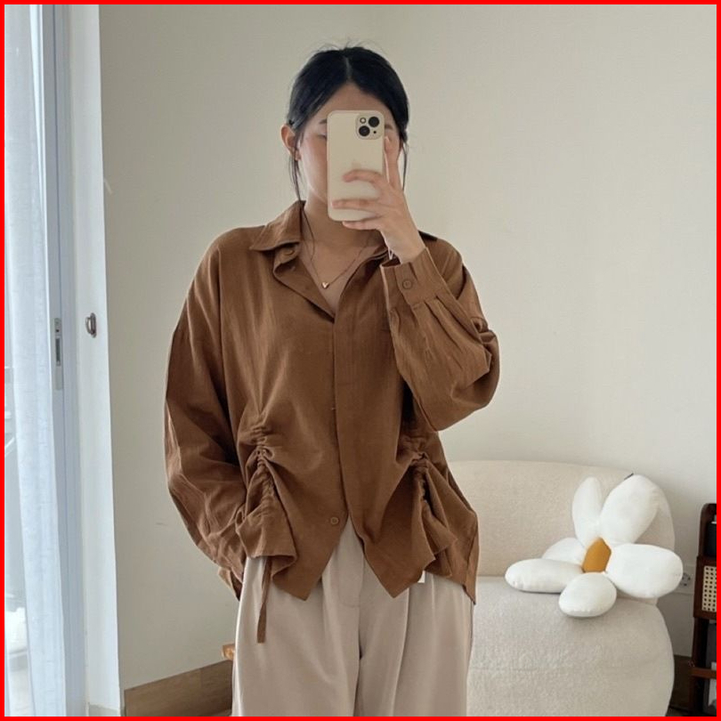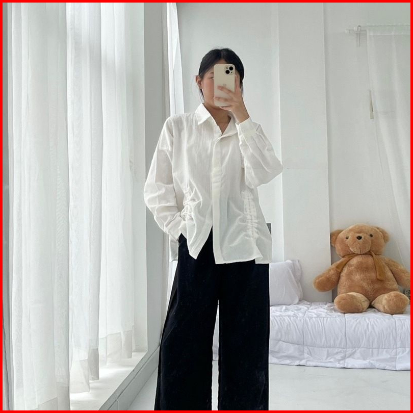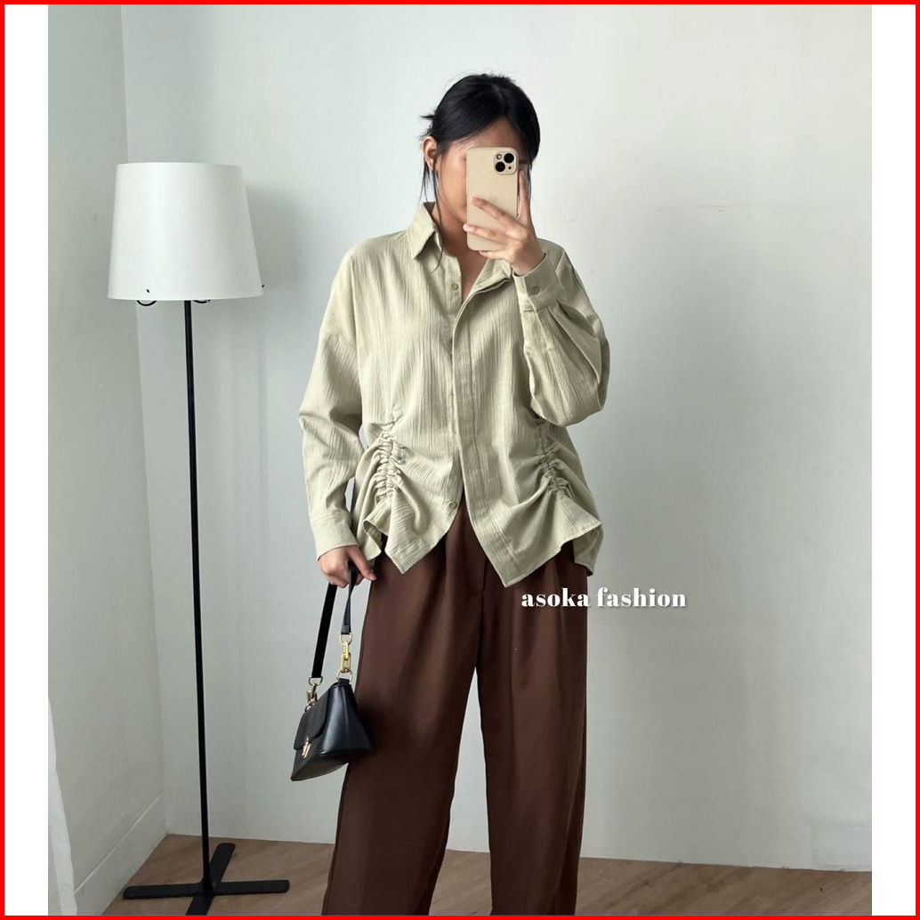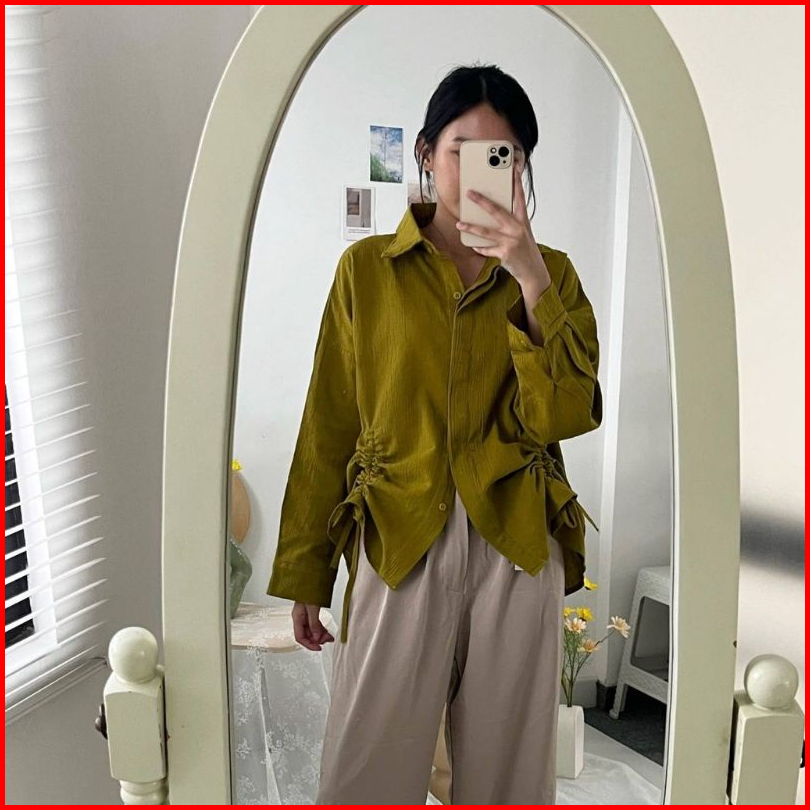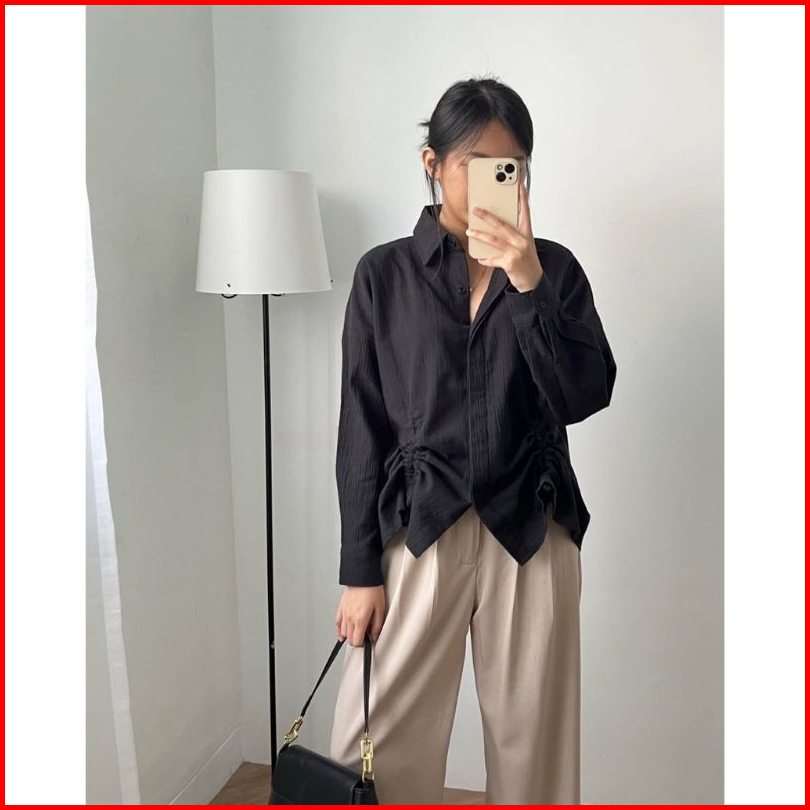 Kemeja Tali Samping Serut Aktif Marshella Kekinian Atasan Kemeja Polos Wanita Terbaru