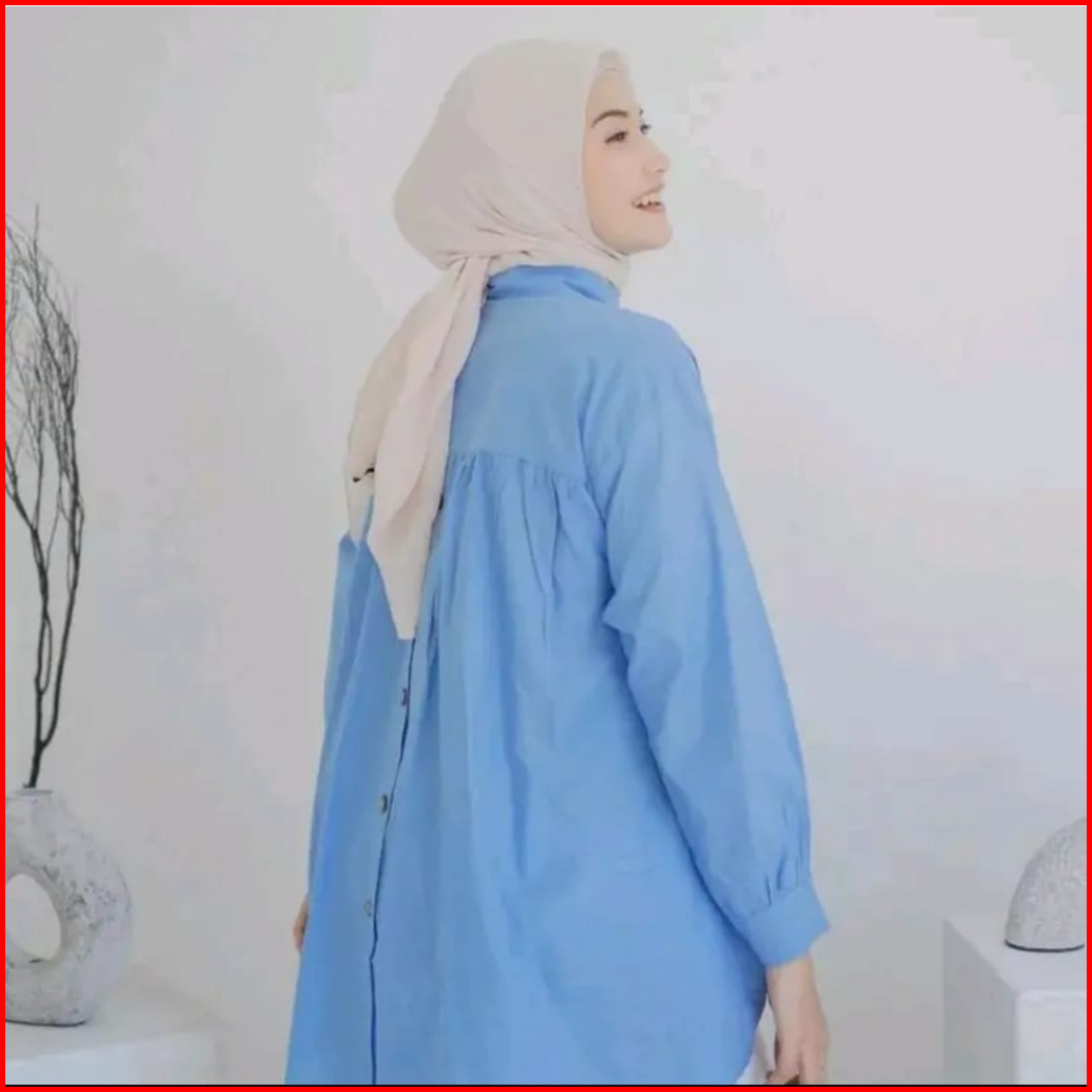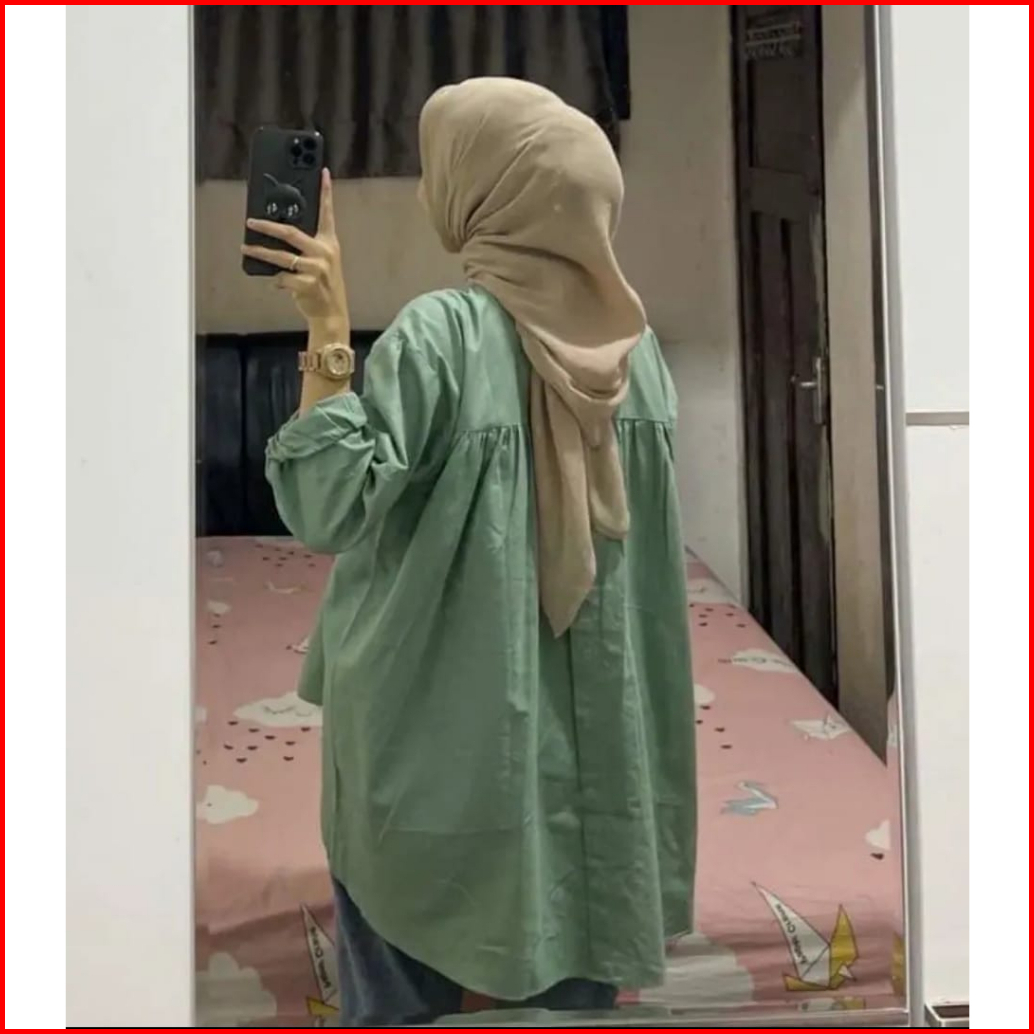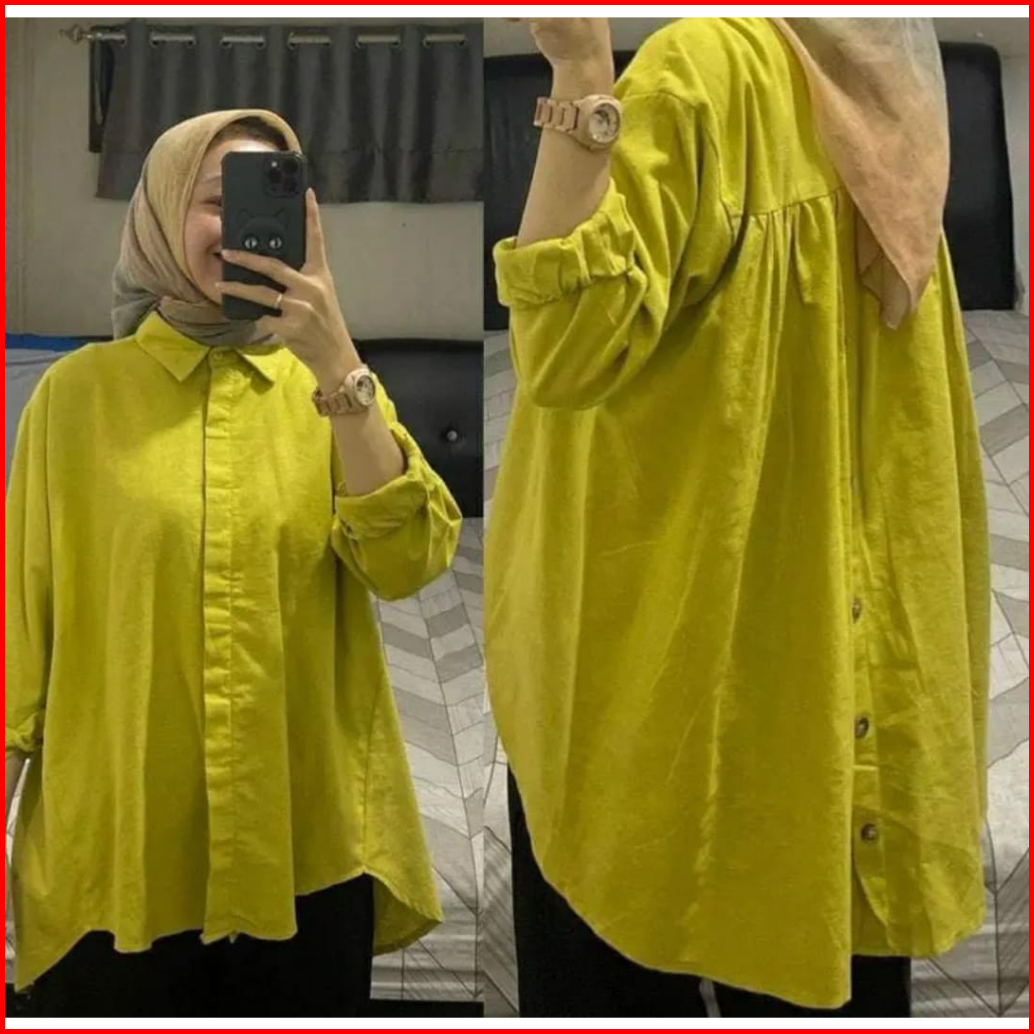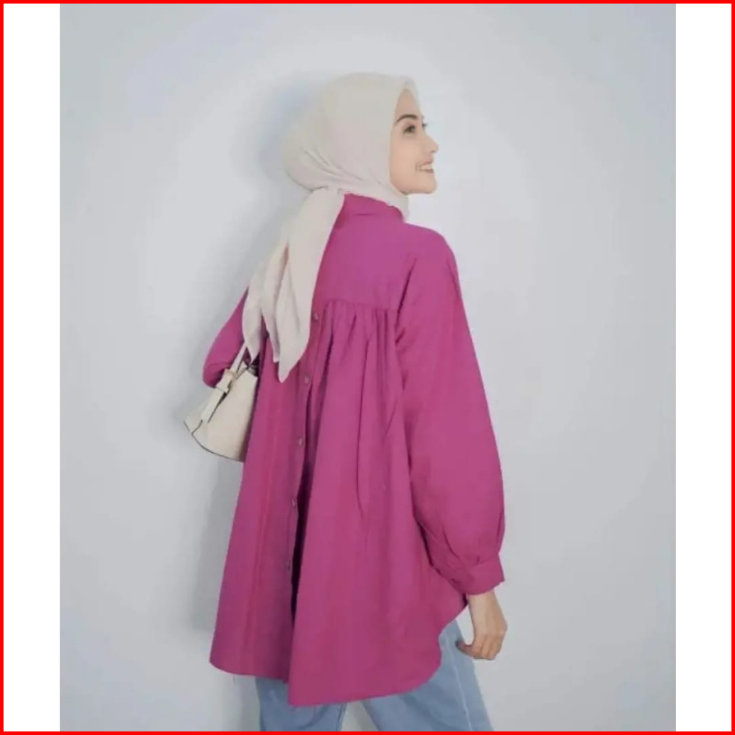 Hana Shirt Kemeja Linen Ld 120 Wanita Kancing Depan Belakang - Rika Linen Shirt Blouse Kekinian