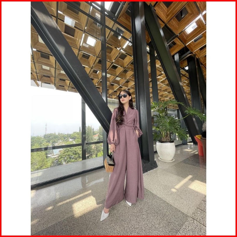 Alena Jumpsuit Wanita Korean Crinkle Flowy